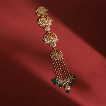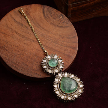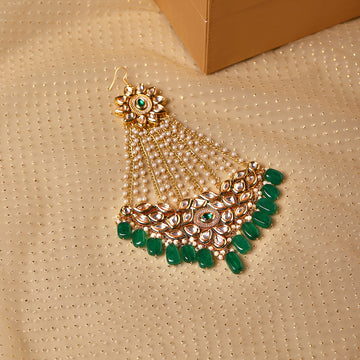 Immerse yourself in elegance with our Round Diamond Embellished and Green Stone Studs, meticulously handcrafted...