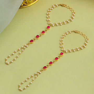 The Gulnaar Pearl Ruby Haath Phool is a beautiful blend of softness and tradition. Designed...