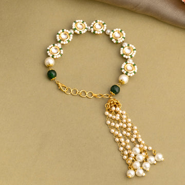 Designed in a classic kundan style, it features a soothing mint-green centre stone that instantly...