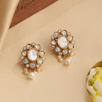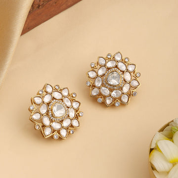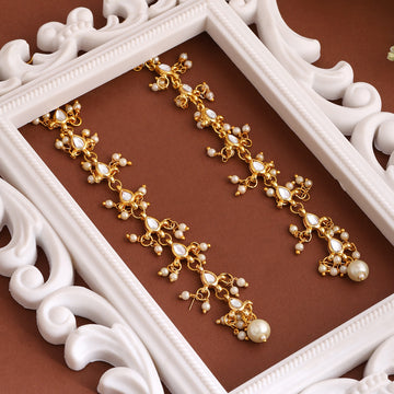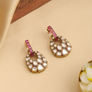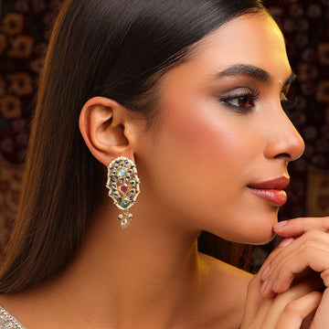 These Earrings feauture intricate kundan work, multi-layered with the kundan stones and fine-gold detailing. The...