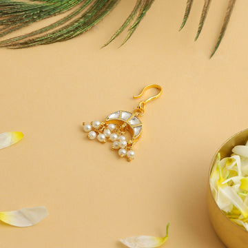 Delicate yet expressive, the Virasat Jewels Maang Tikka is a graceful single-line pearl strand flows...
