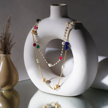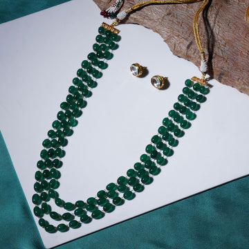 Designed to make a statement, this Long Layered Green Neckpiece with Kundan Studs is a perfect...