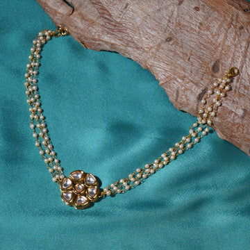 Crafted with utmost precision, this exquisite choker features radiant Kundan stones delicately set in a...