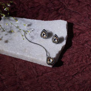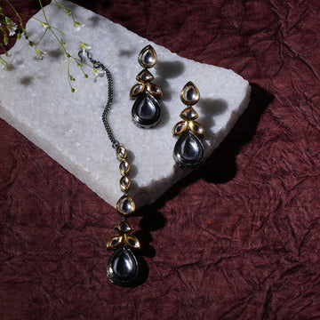 Get ready to dazzle on your special day with our Kundan Dual Stone Maang Tikka...