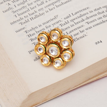 This ring showcases the timeless beauty of Kundan craftsmanship. The intricate setting of Kundan stones...