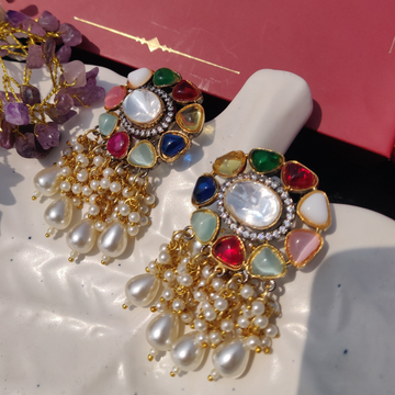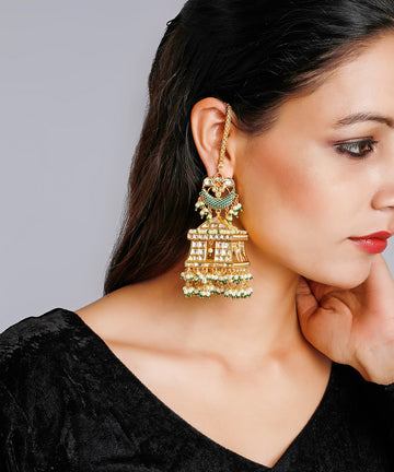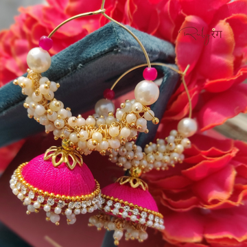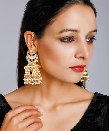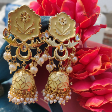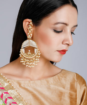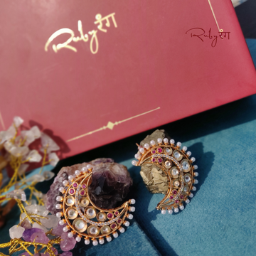 Ruby Raang Gold Plating Pearl Chand bali Earrings .