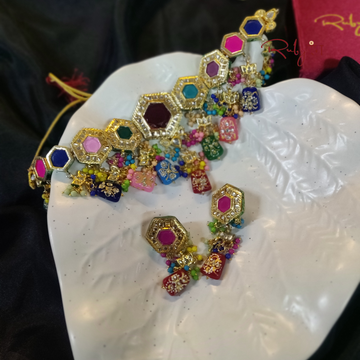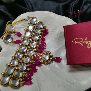 Ruby Raang Gold Plating Kundan neckpiece with studs .