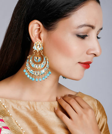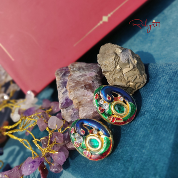 Ruby Raang Gold Plating Enamel Chand Earrings.