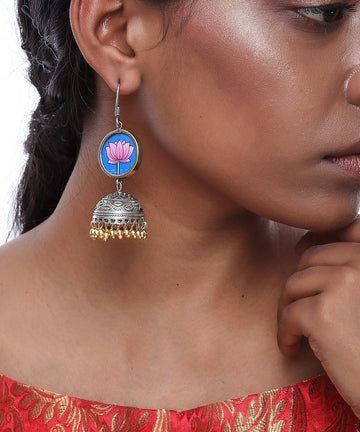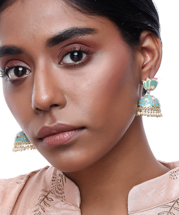 Ruby Raang Gold Plating Handpainted Jhumki.