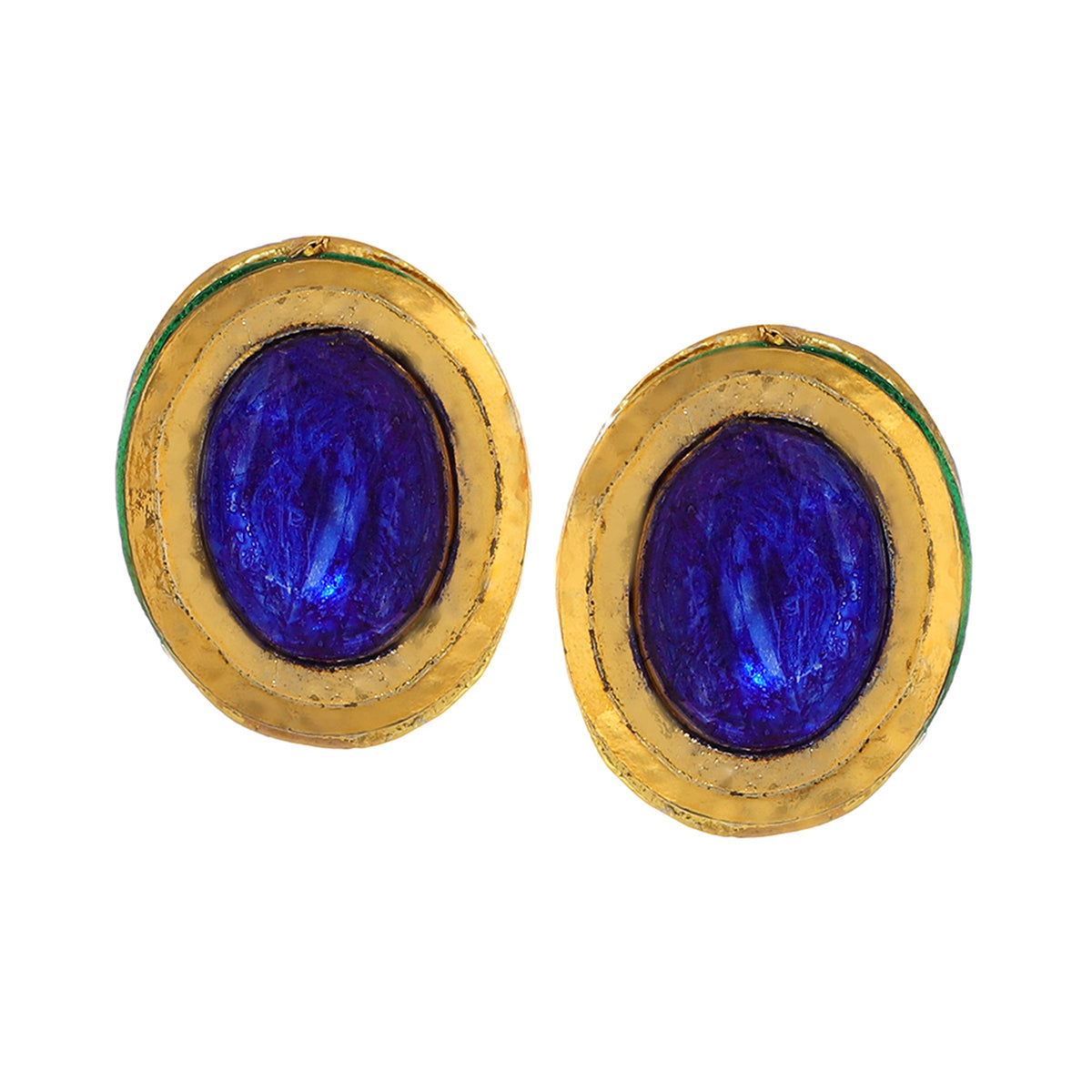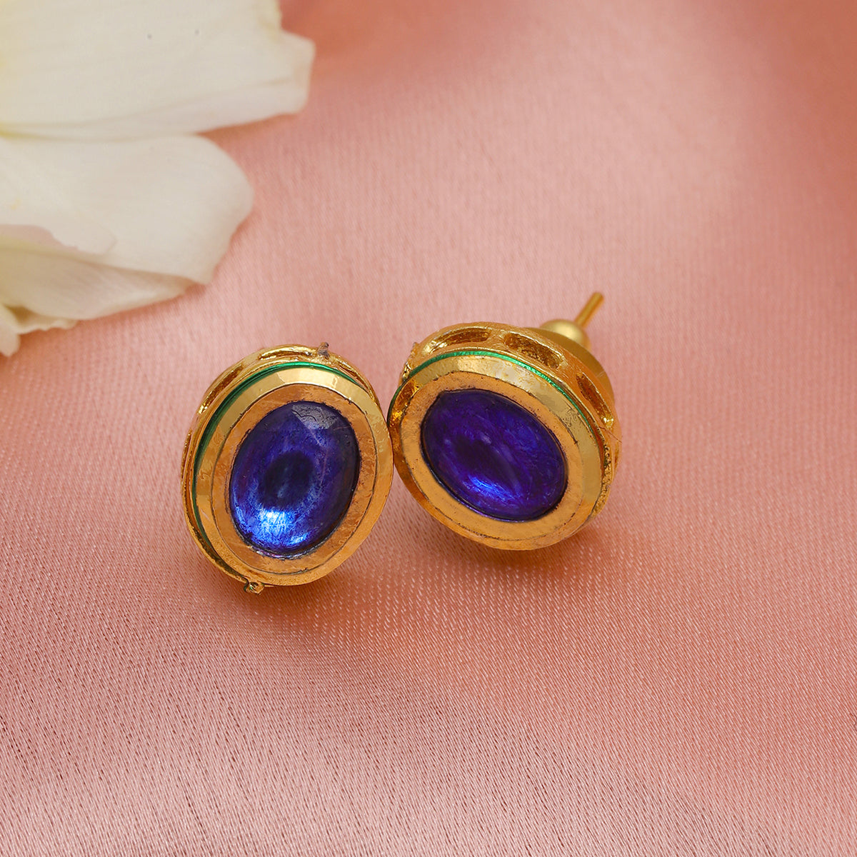 Immerse yourself in elegance with our Round Blue Kundan Studs, meticulously handcrafted by skilled women artisans. These captivating studs showcase a perfect blend of tradition and contemporary allure, with each piece individually crafted to perfection. The rich blue Kundan stones, set in a luxurious gold-plated base, create a timeless accessory that exudes sophistication. Revel in the impeccable craftsmanship of our artisans, as they infuse each stud with authenticity and artistry. Elevate your style with these handcrafted gems, a symbol of empowerment, tradition, and the unique touch of women artisans.