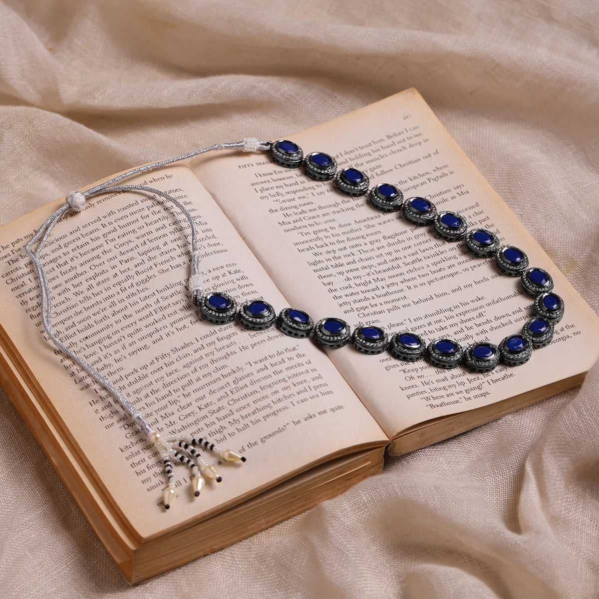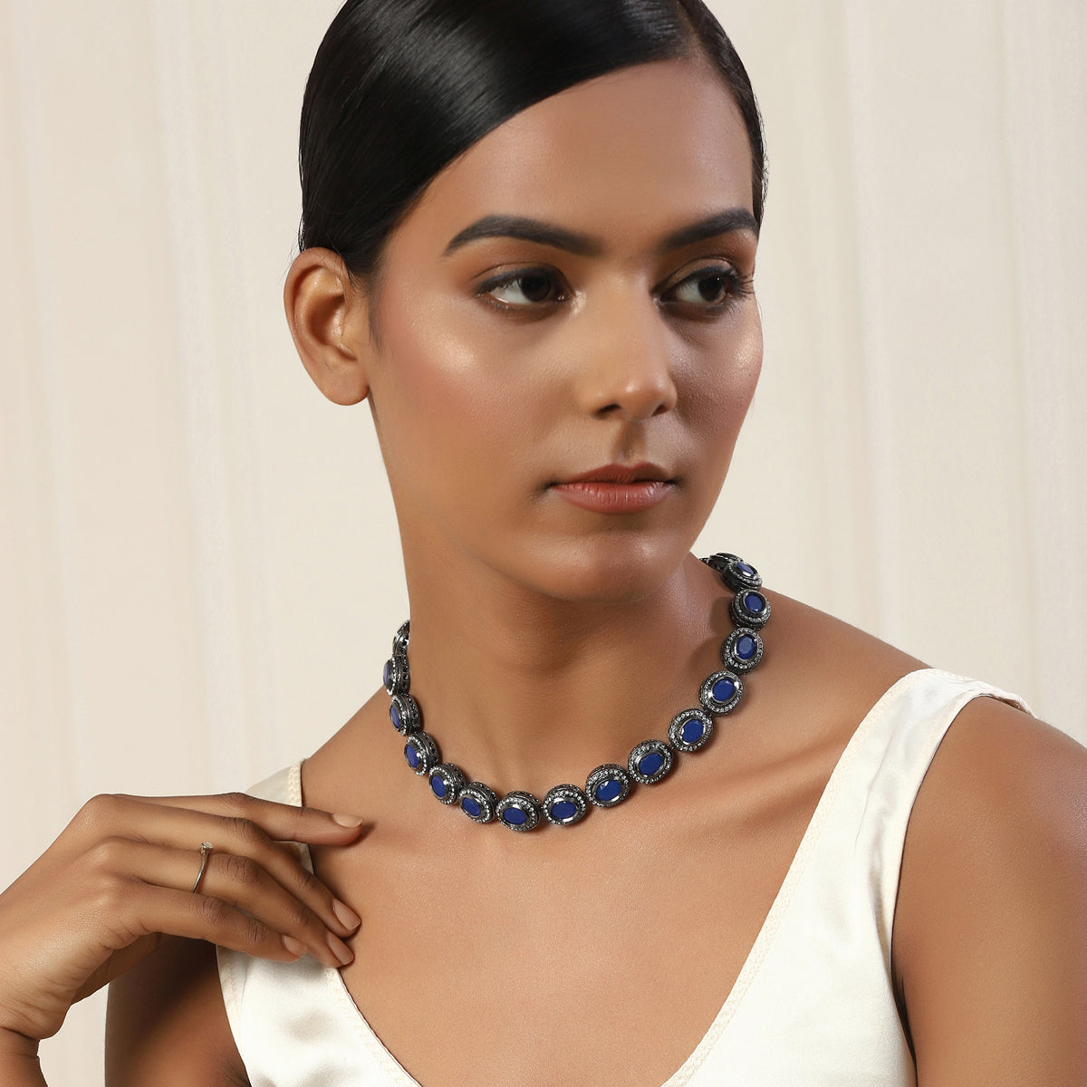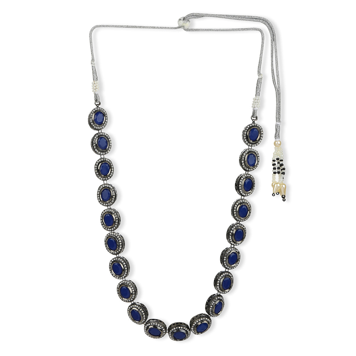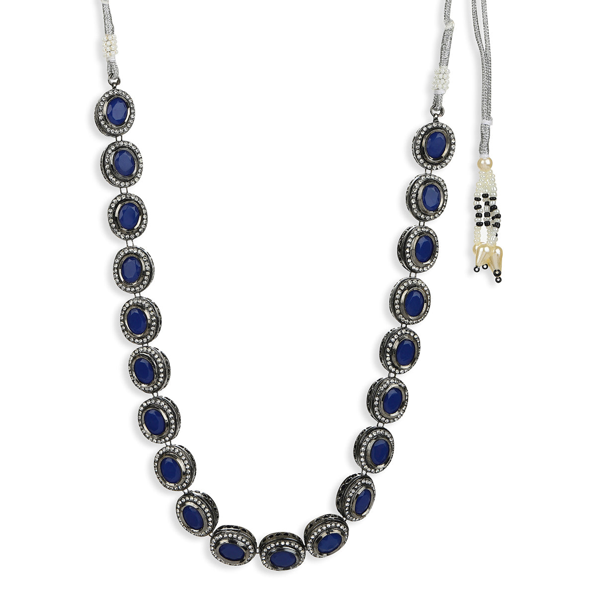 Ruby Raang Blue Silver Tone Kundan Necklace