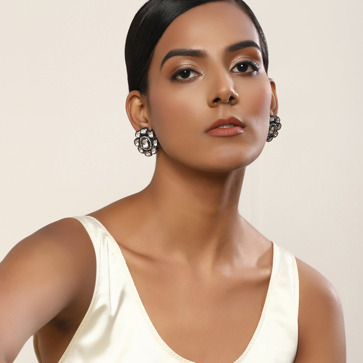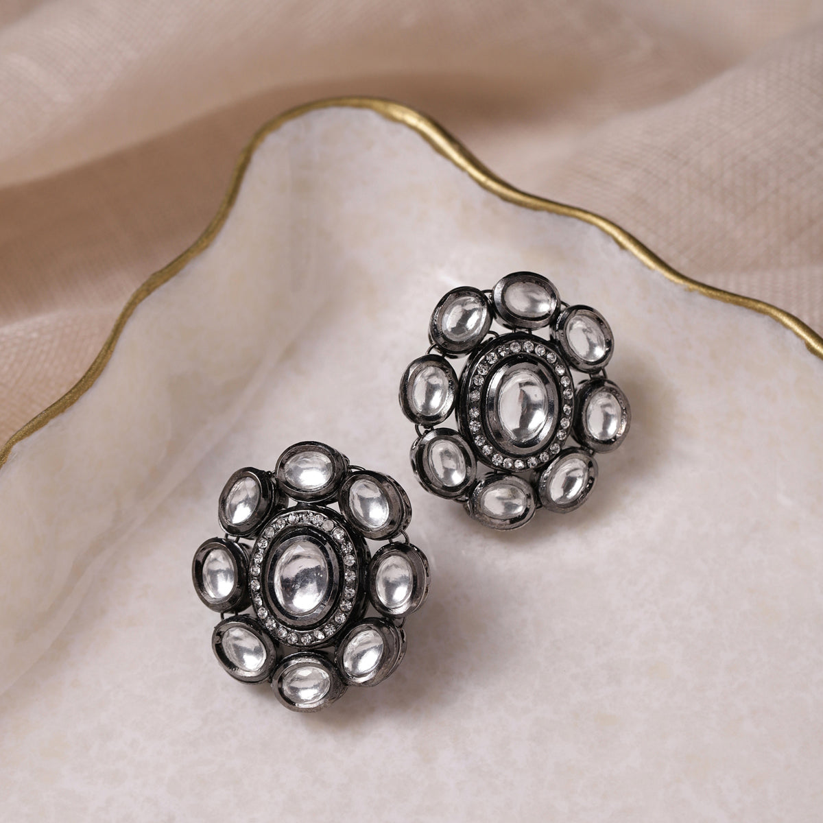 Silver Tone Kundan Studs
