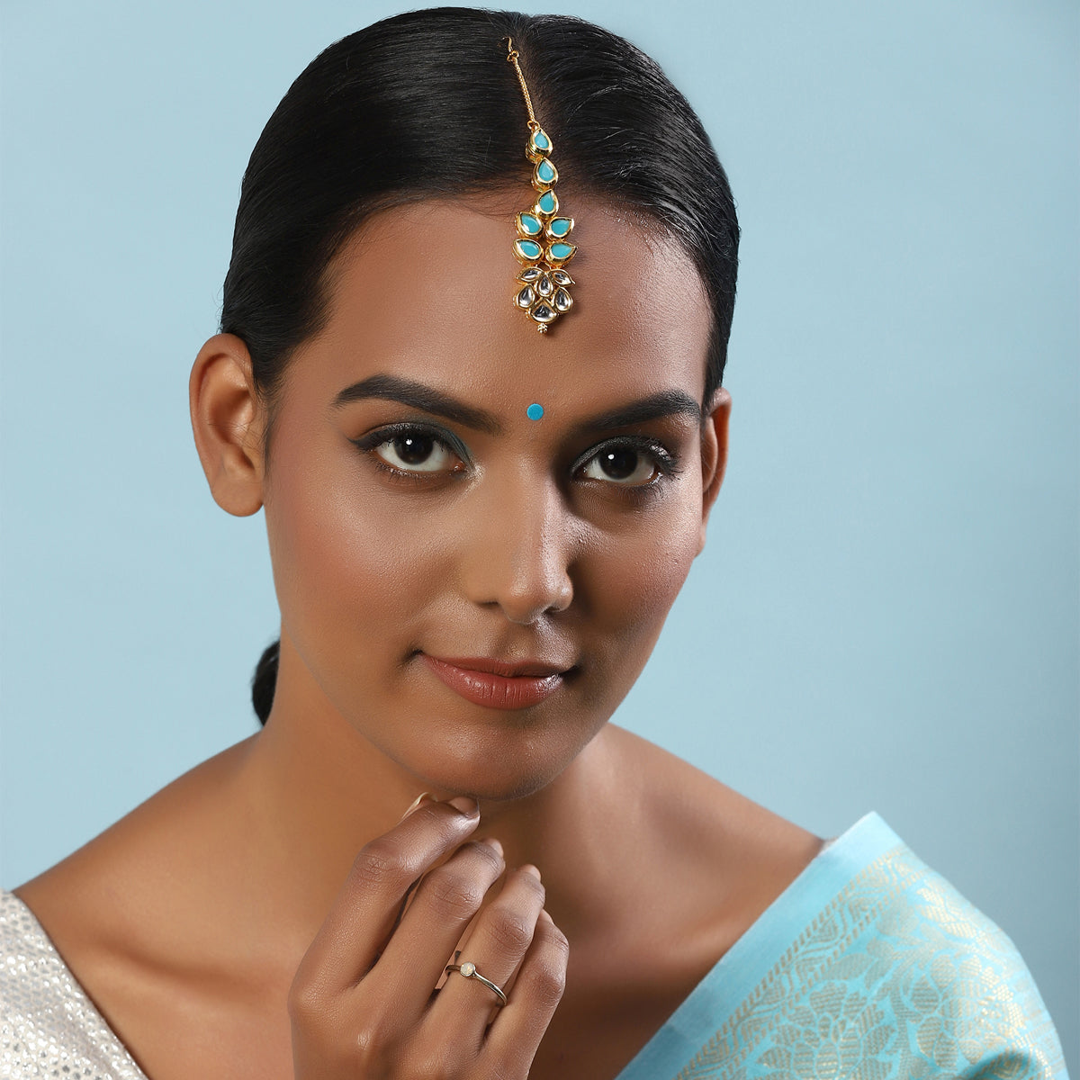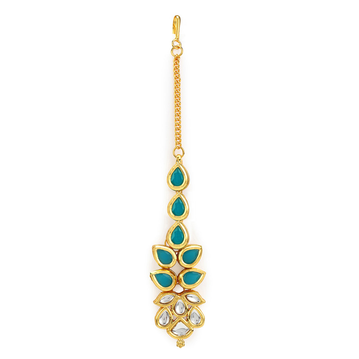Ruby Raang Blue Kundan Maang Tikka