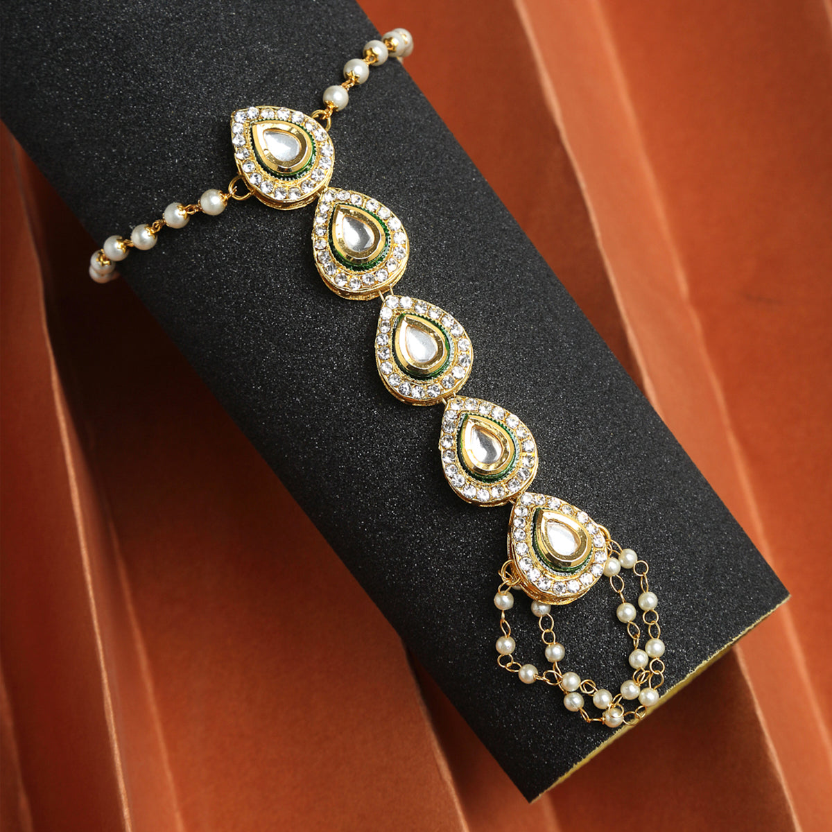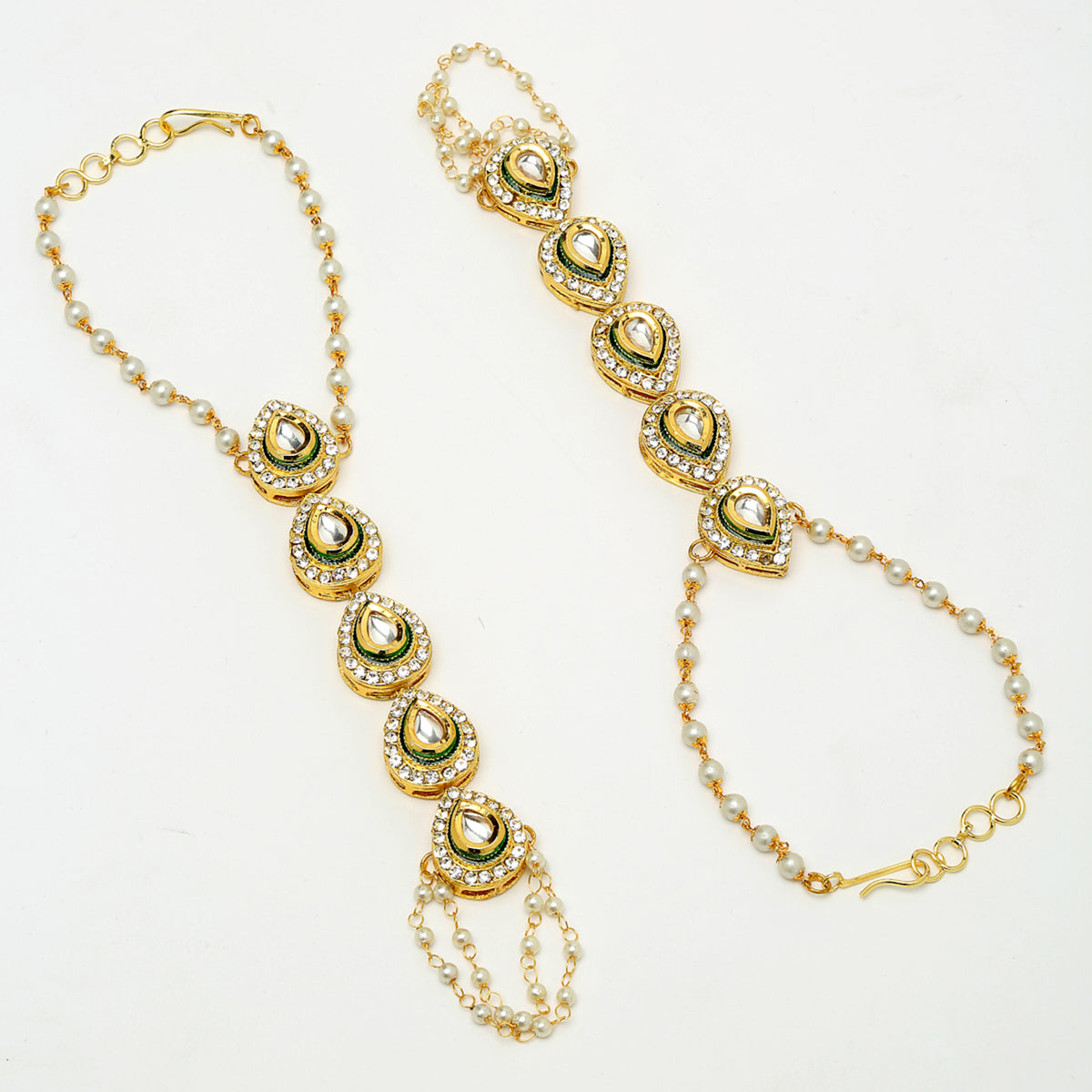 Ruby Raang Women's Kundan Hand Harness (set of 2)