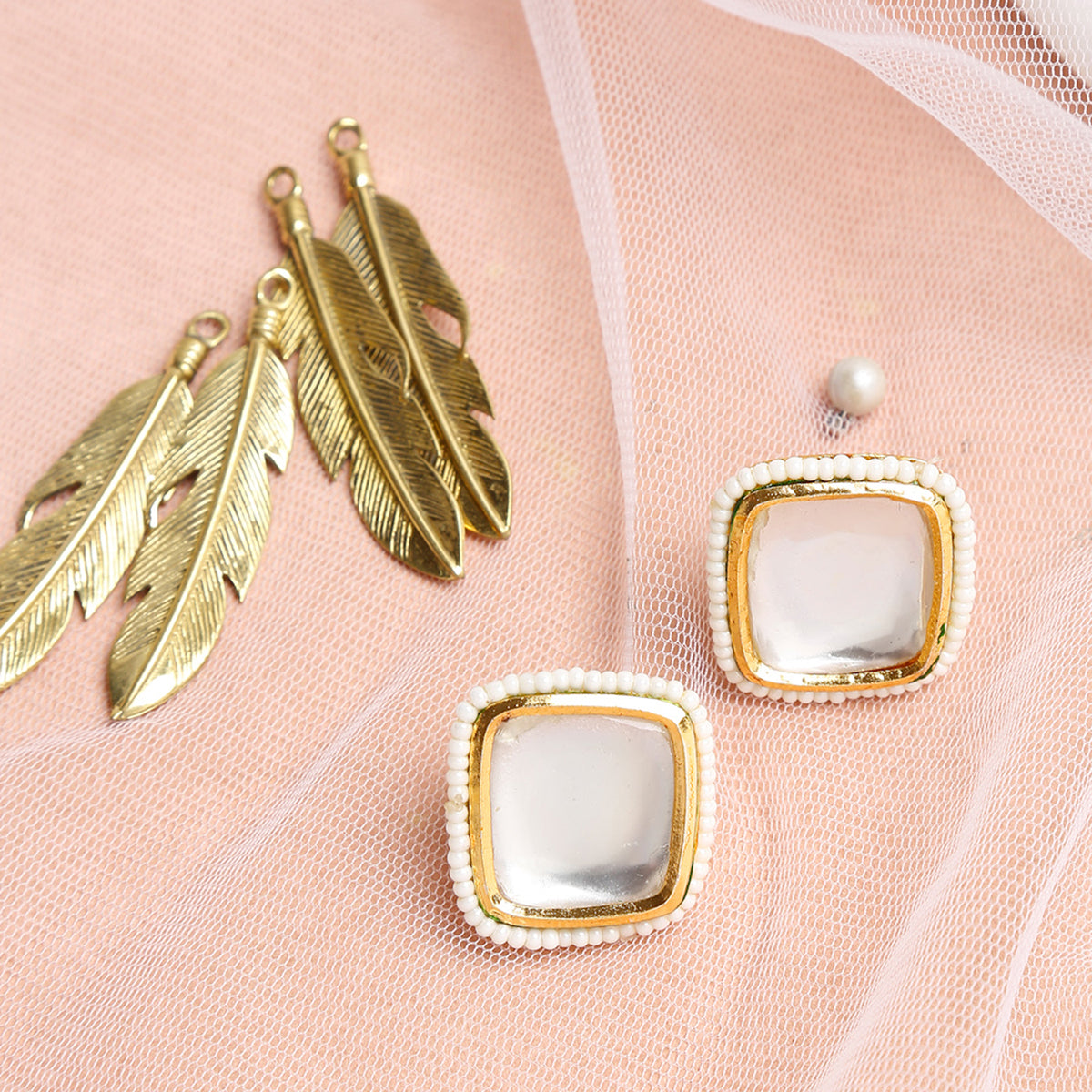 Ruby Raang Women's Kundan Pearl Studs
