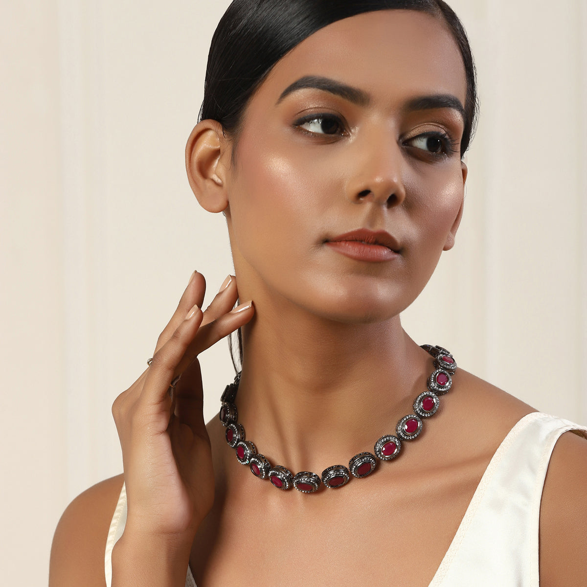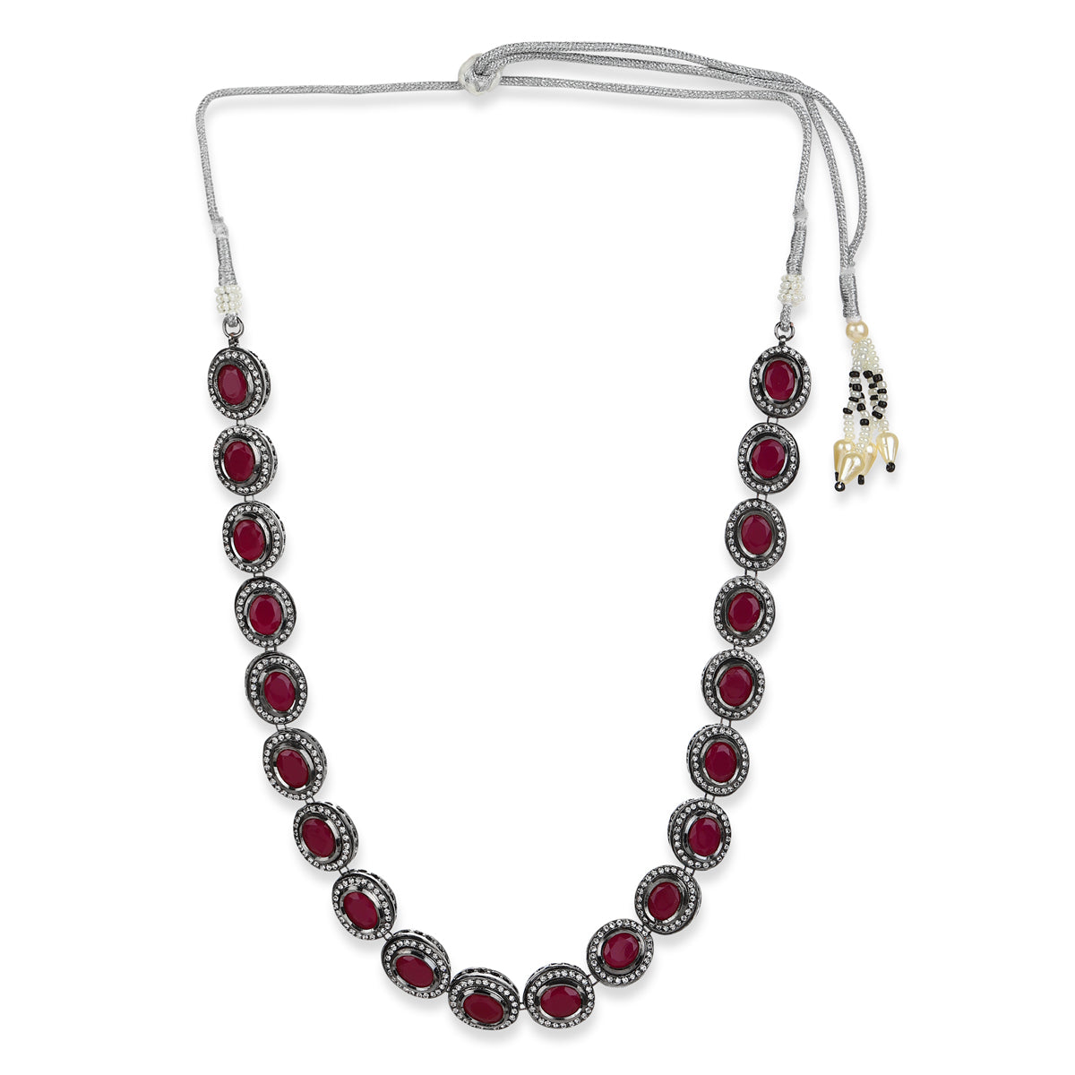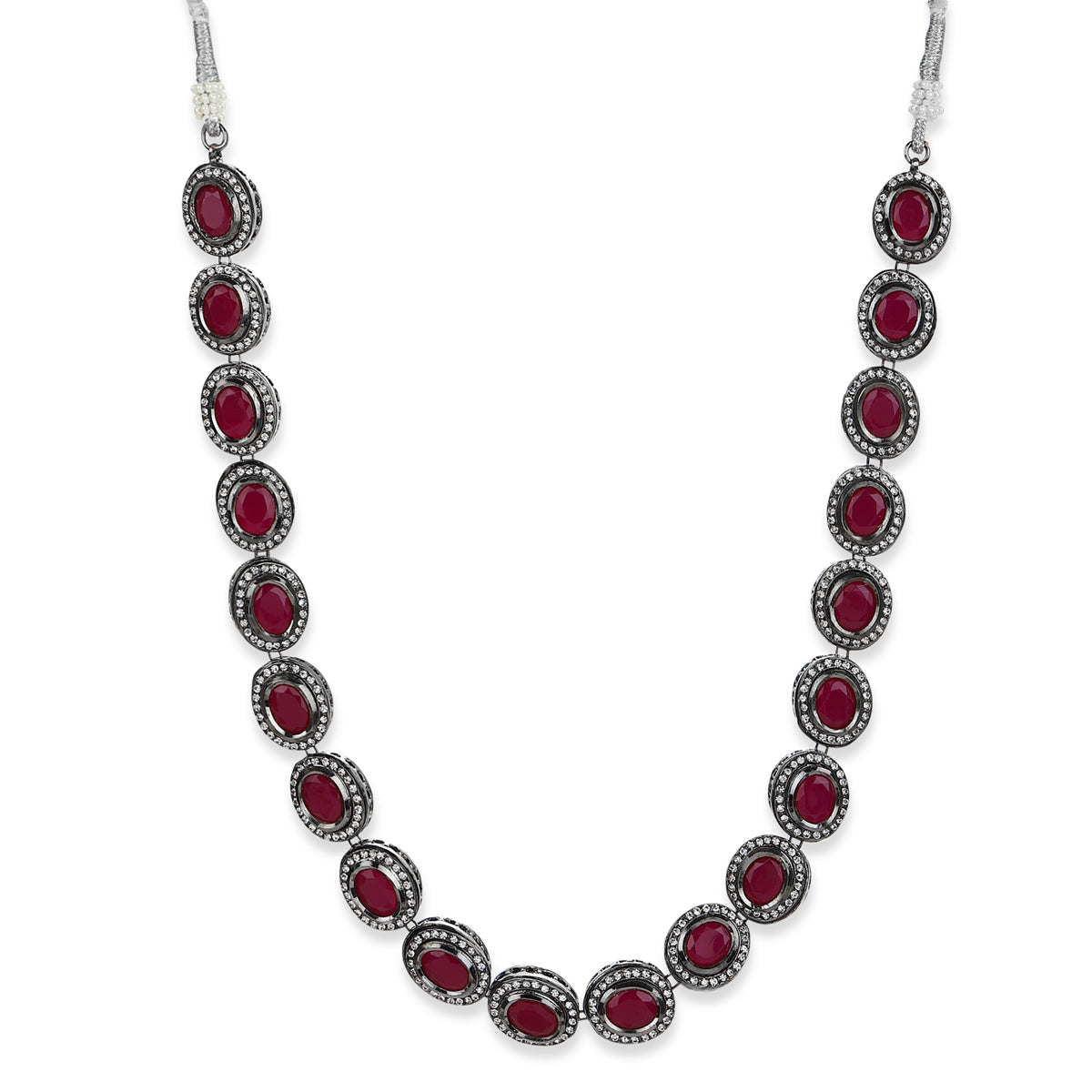 Maroon Silver Tone Kundan Necklace