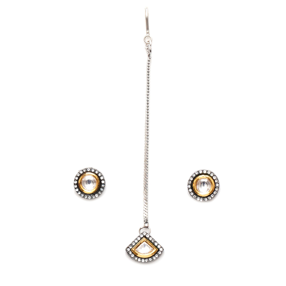 Ruby Raang Dual Tone Kundan Maang Tikka with Earrings