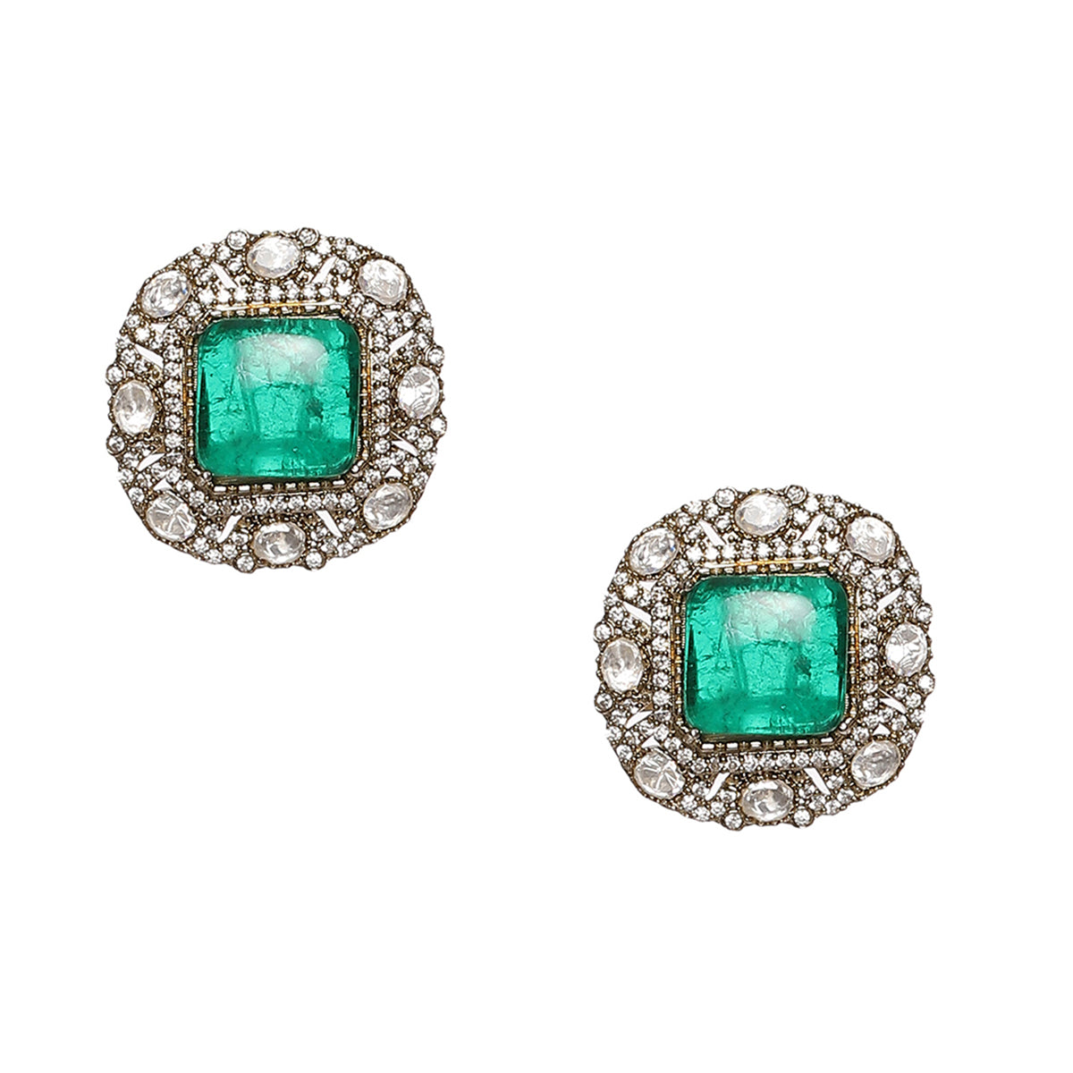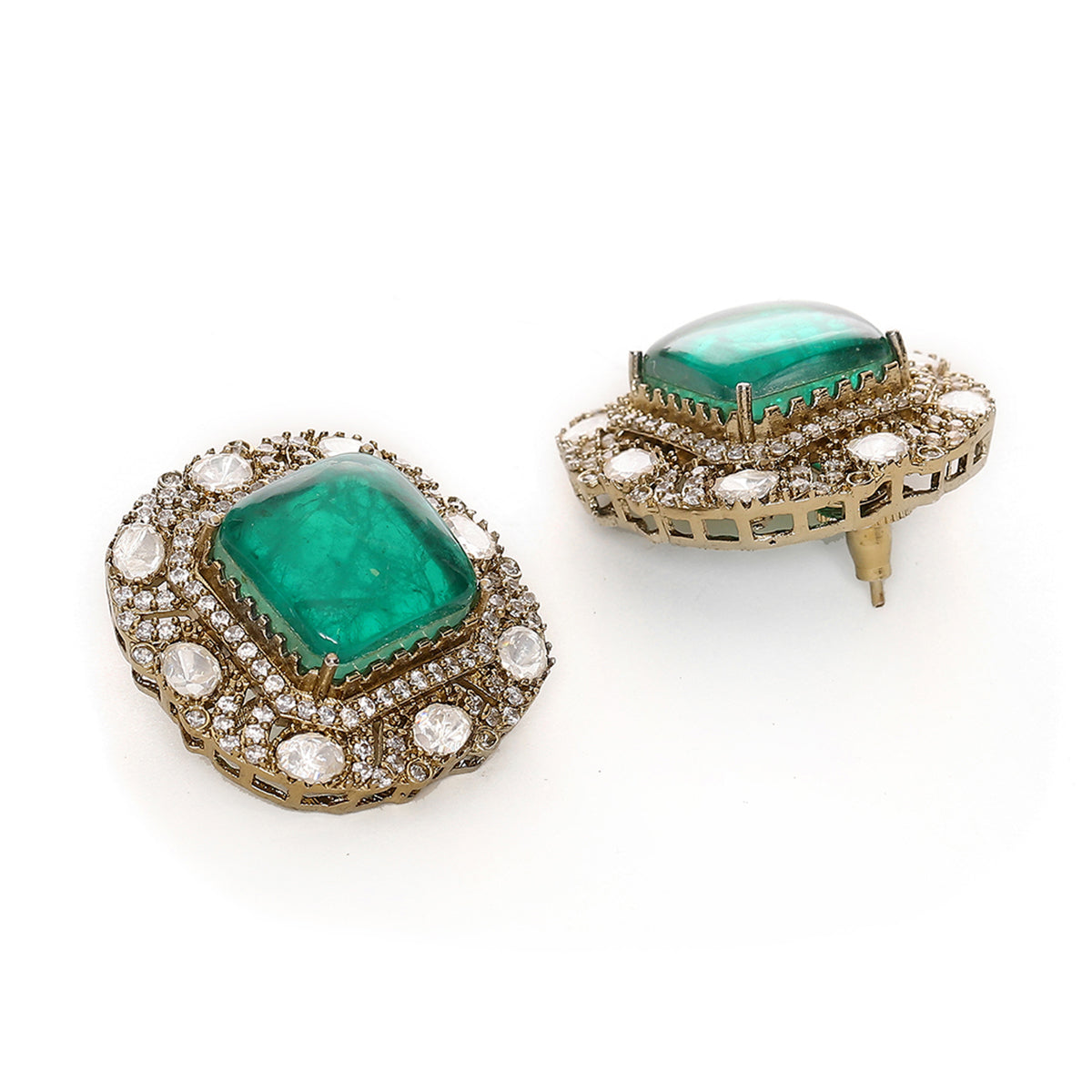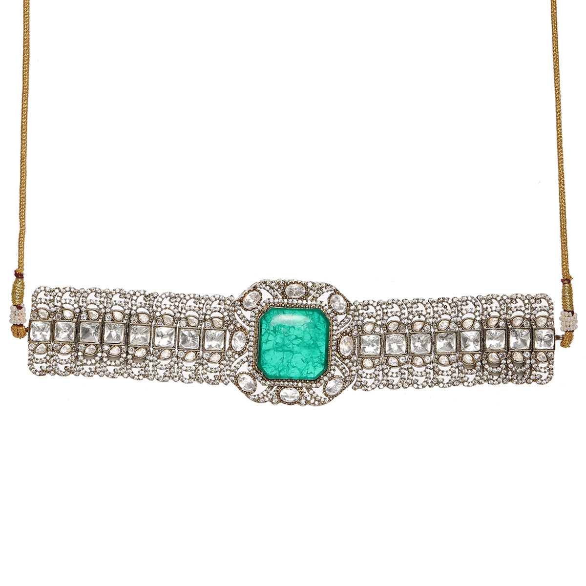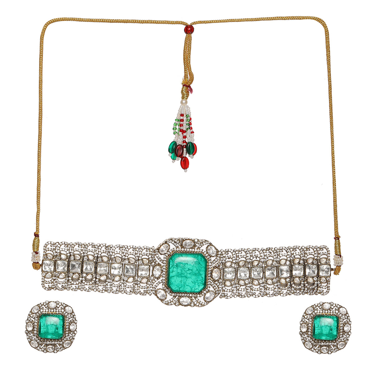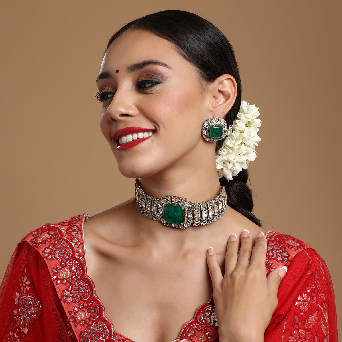 Ruby Raang Emerald Stone with Diamonds and Mossainite Choker and Studs