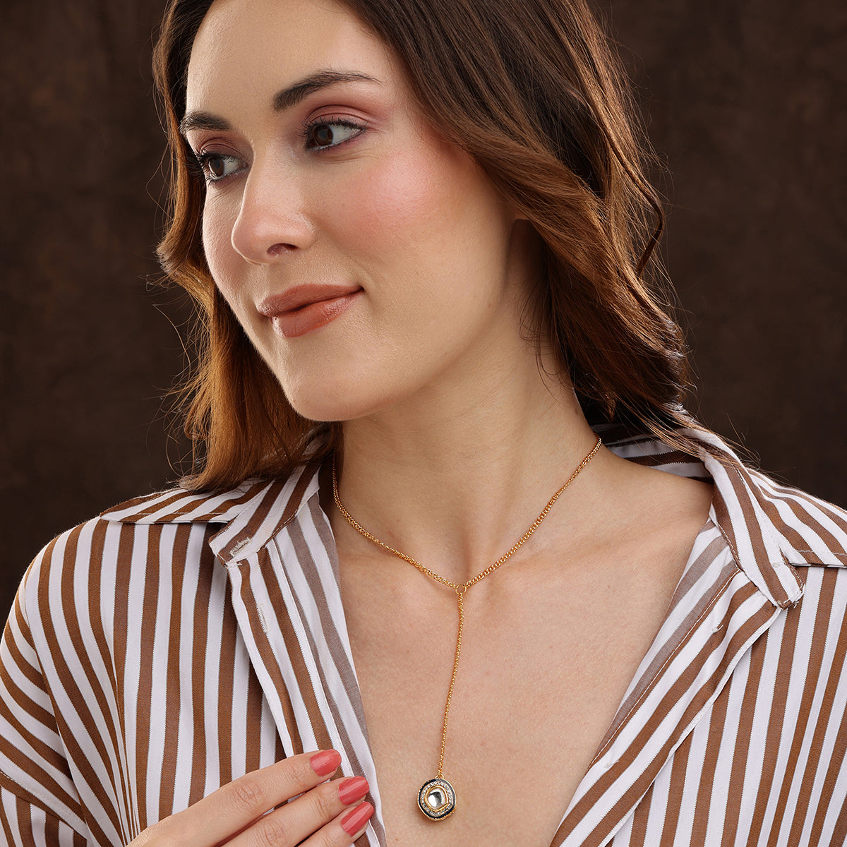 Ruby Raang’s gold-plated Kundan necklace beautifully marries traditional artistry with sustainable craftsmanship. Handcrafted by marginalized women artisans, this exquisite piece features intricately set Kundan stones that shimmer against a rich gold-plated base, reflecting timeless elegance. Created using eco-conscious methods, the necklace honors heritage while promoting ethical fashion. Perfect for weddings, festivals, or special occasions, it elevates any outfit with its regal charm and meaningful story of empowerment and craftsmanship.