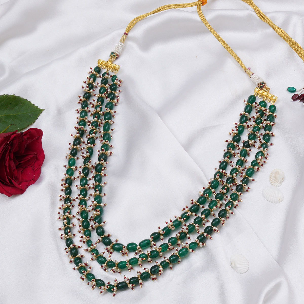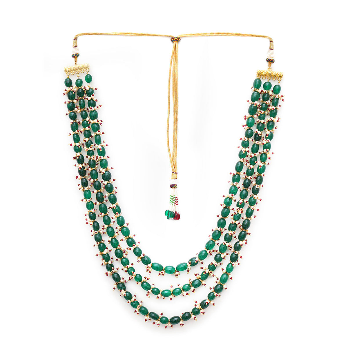 Ruby Raang Green and Pearl Layered Groom Neckpiece