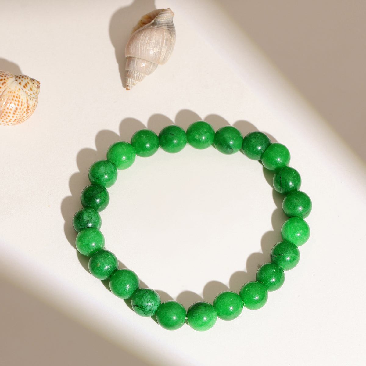 USE CODE: LOVE30Invite harmony and elegance into your accessory collection with Ruby Raang’s Green Beads Elastic Bracelet, handcrafted from Green Jade stones. Celebrated for its nurturing and balancing properties, Green Jade is believed to attract prosperity and emotional well-being. The polished round beads radiate a serene, earthy green that complements a range of styles, while the elastic cord ensures a secure and comfortable fit for everyday wear. Minimal yet meaningful, this bracelet brings a refreshing touch of nature-inspired beauty to any ensemble. Style tip: Pair it with whites, neutrals, or florals to highlight the calming tone of the jade.