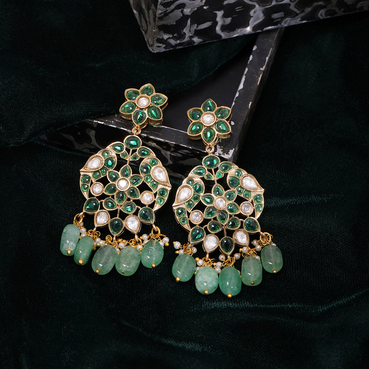 Green Kundan Earrings