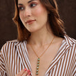 Wear this necklace with a silk saree or embroidered lehenga in contrasting tones like cream, blush, or mustard. A classic updo or side-swept hairstyle will highlight its intricate detailing.