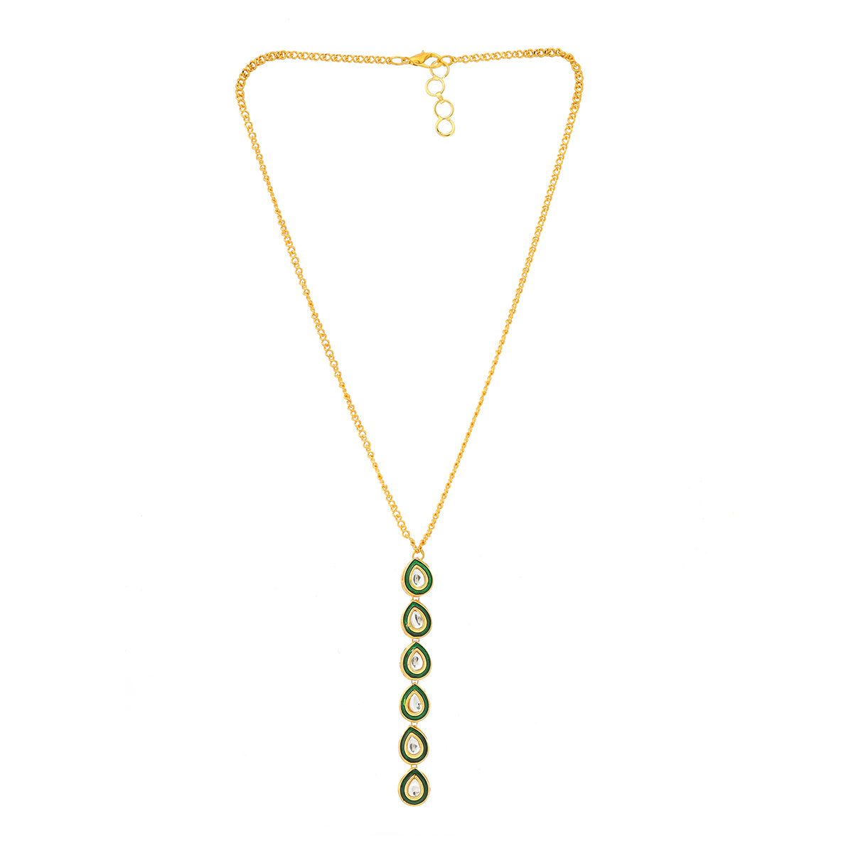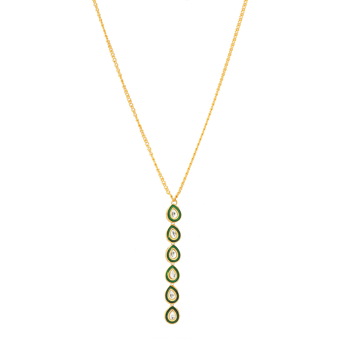 USE CODE: LOVE30Ruby Raang’s green Meenakari Kundan necklace is a radiant fusion of traditional artistry and conscious luxury. Handcrafted by marginalized women artisans, this exquisite piece showcases intricate Meenakari enamel work in rich green hues, beautifully paired with shimmering Kundan stones and finished in a lustrous gold-plated setting. Crafted using sustainable practices, the necklace reflects a timeless elegance rooted in cultural heritage and ethical craftsmanship. Perfect for festive occasions, weddings, or statement dressing, it’s a celebration of color, craftsmanship, and empowerment.