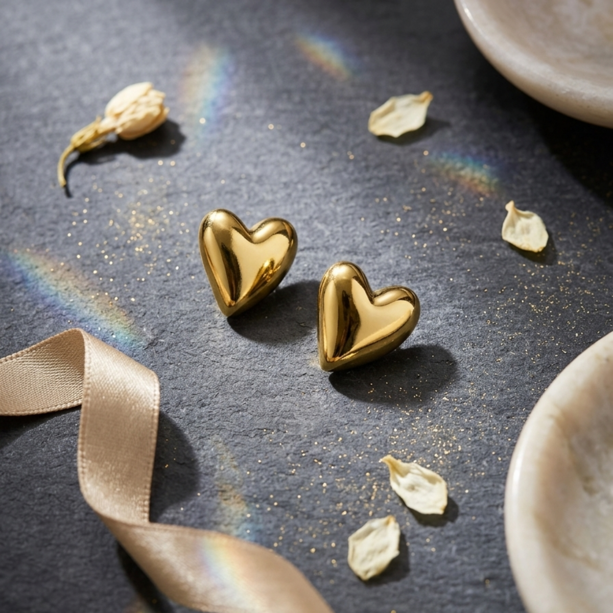 TAGS: puffed heart stud earrings, gold heart studs, high polish earrings, dome heart earrings India, everyday earrings, romantic earrings, Valentine earrings, gift earrings, sona rupa