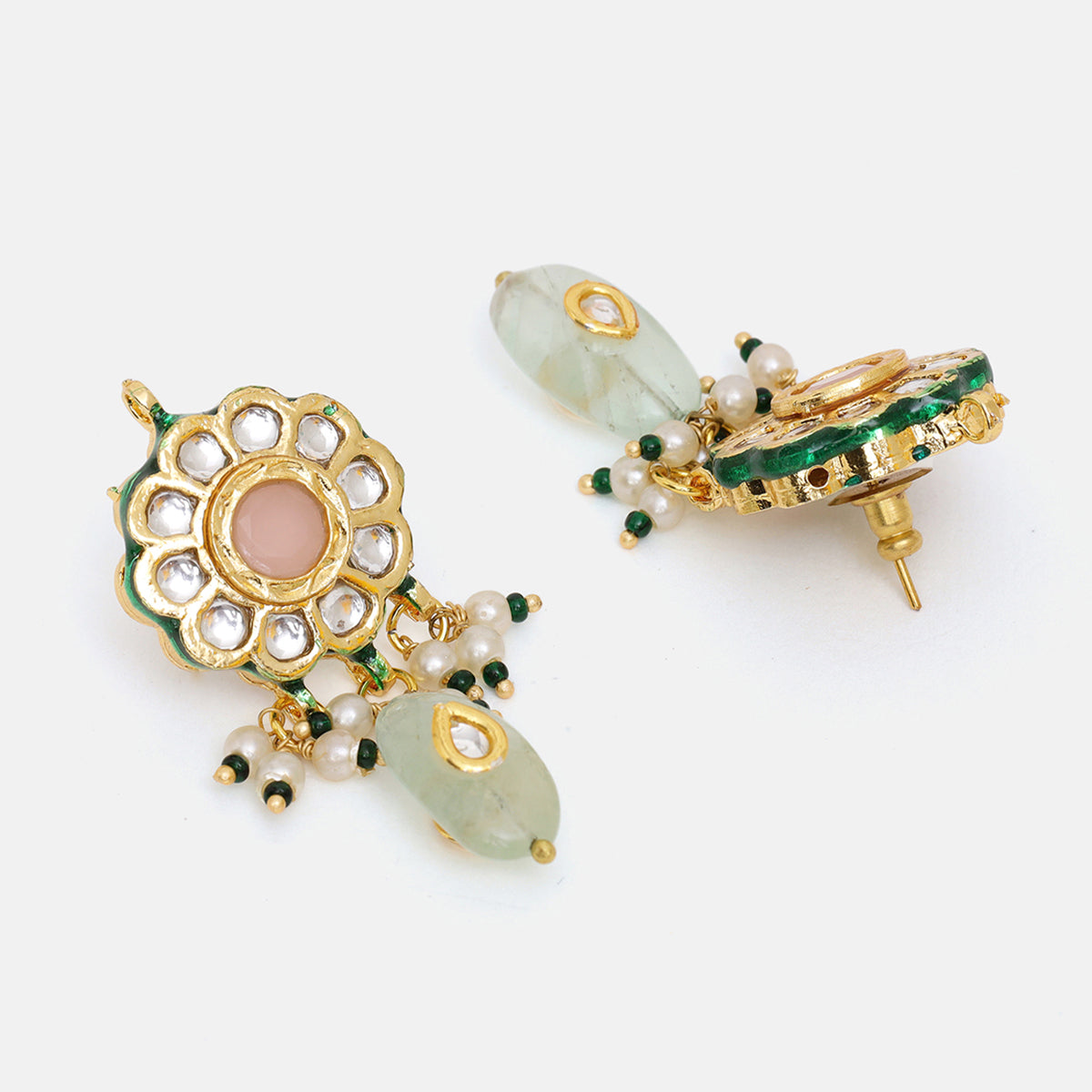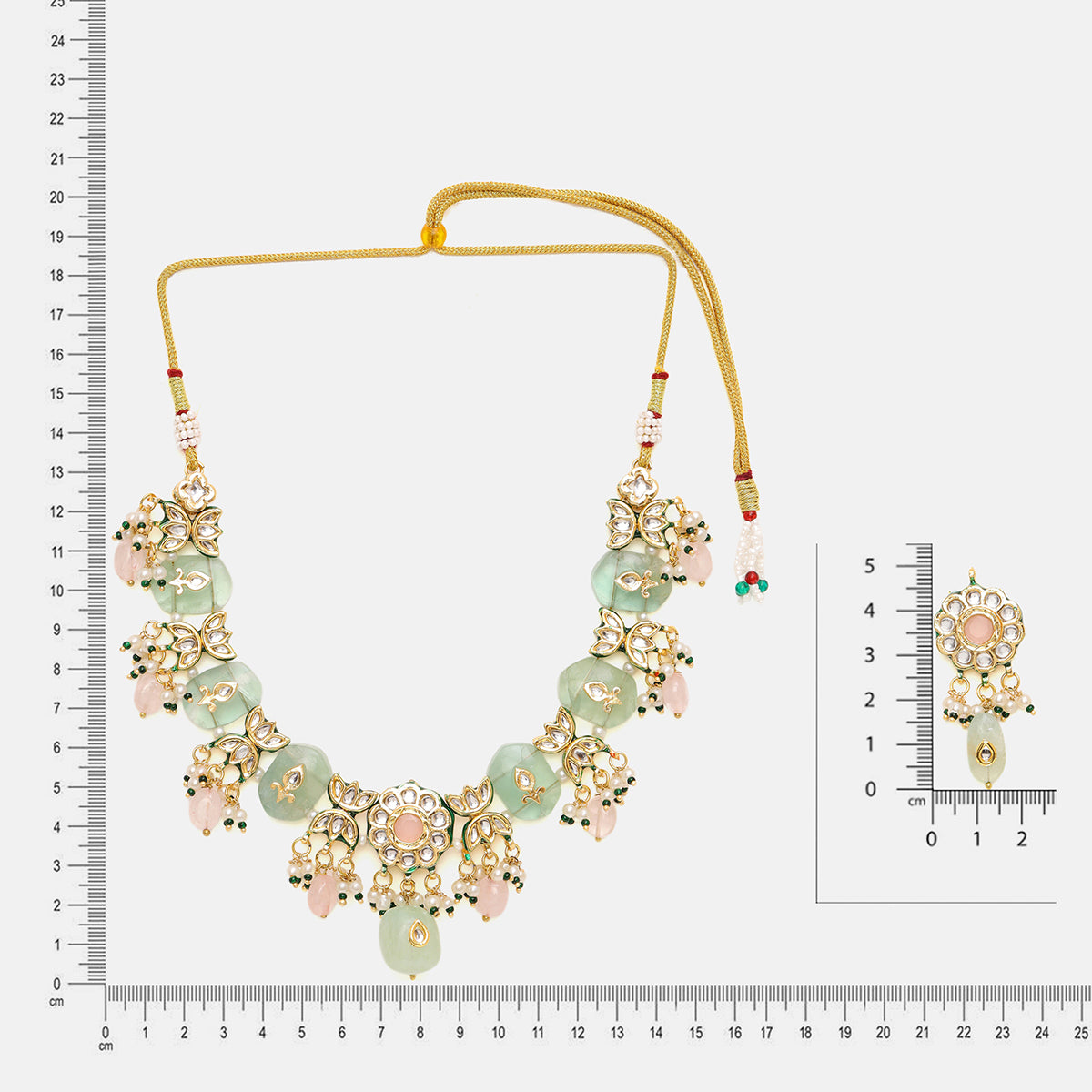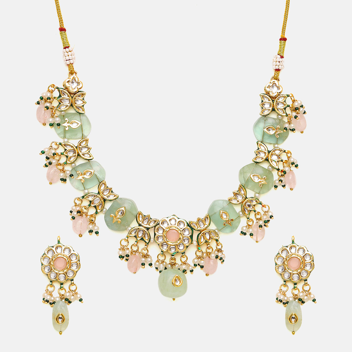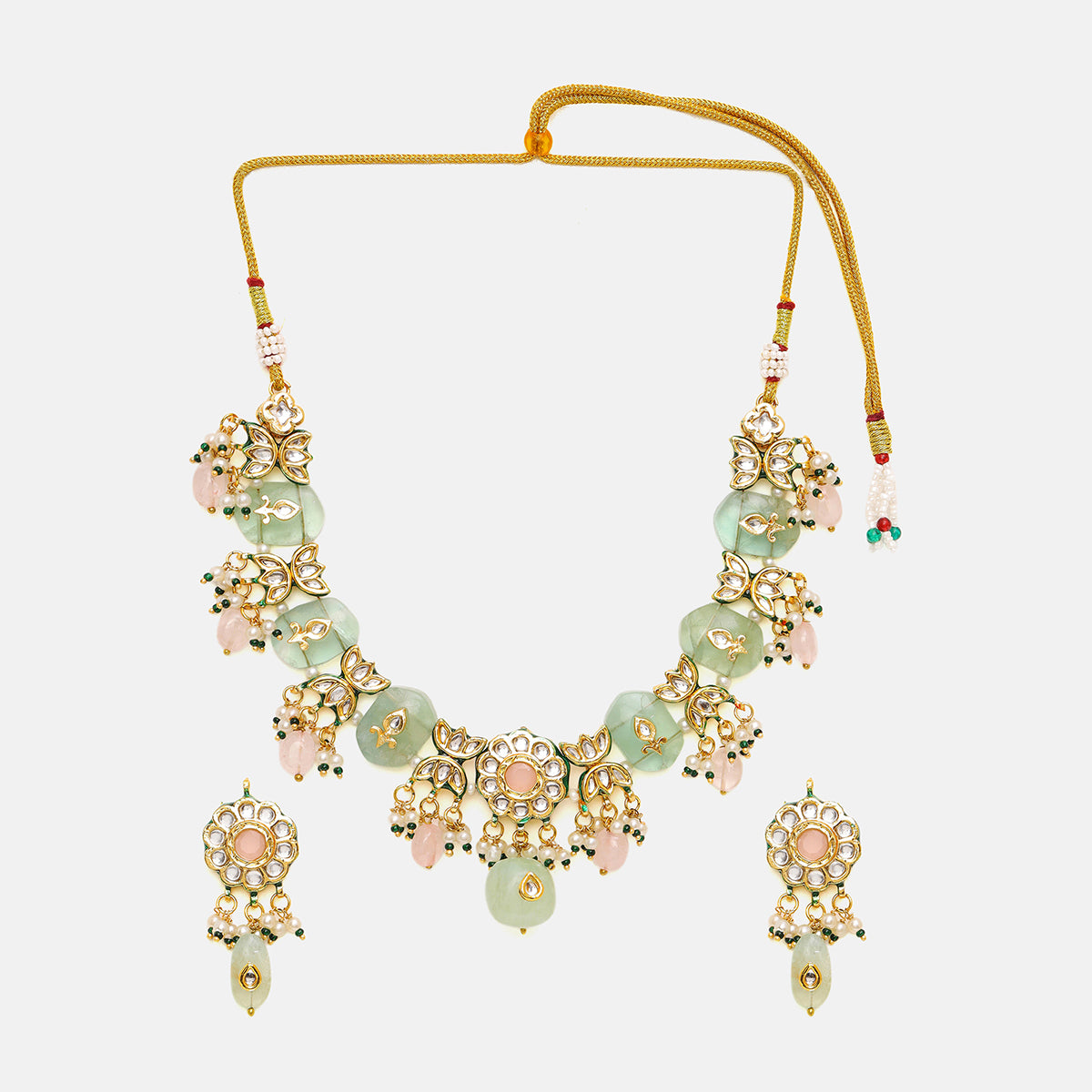 Kundan and Mint Colored Stonework Necklace with Matching Earrings