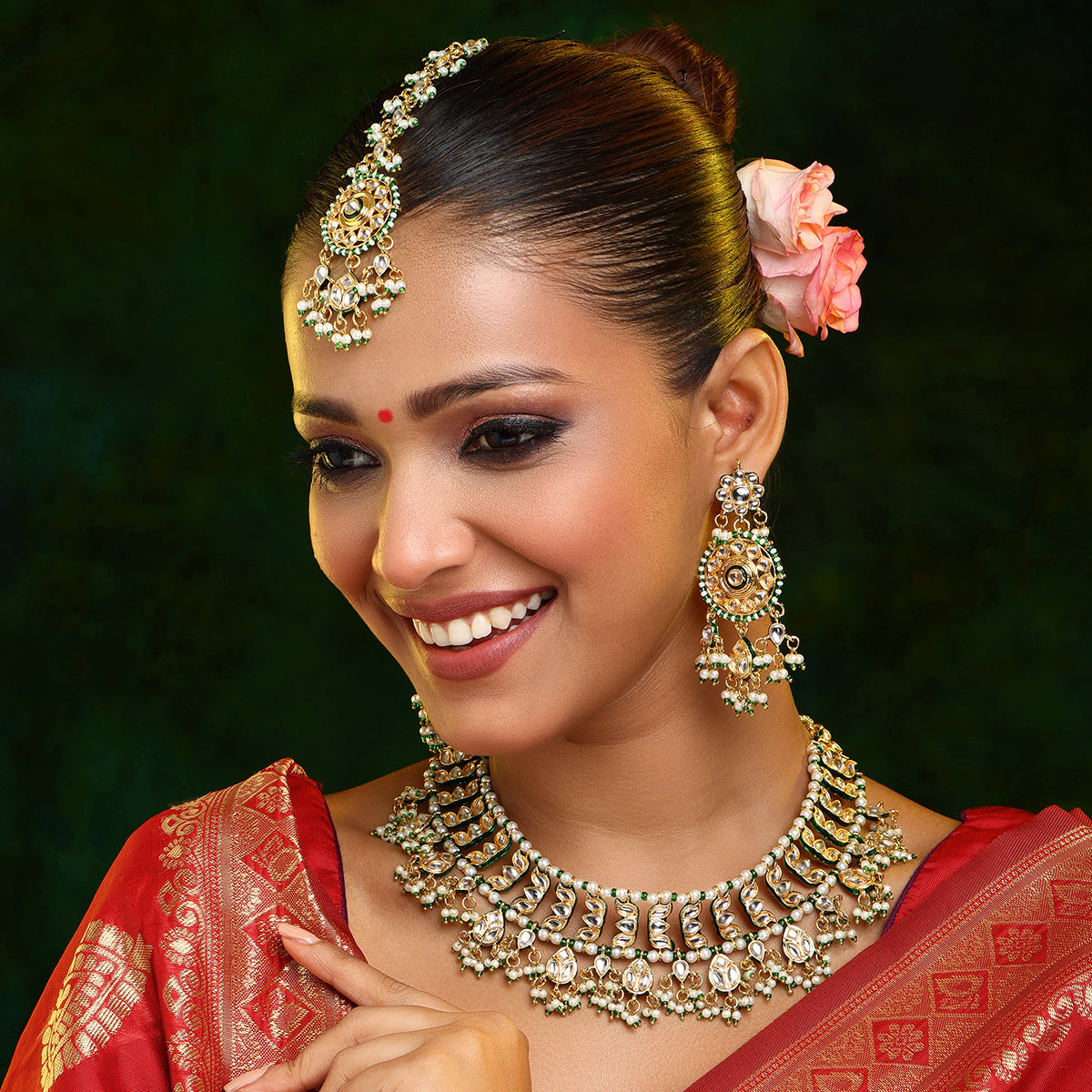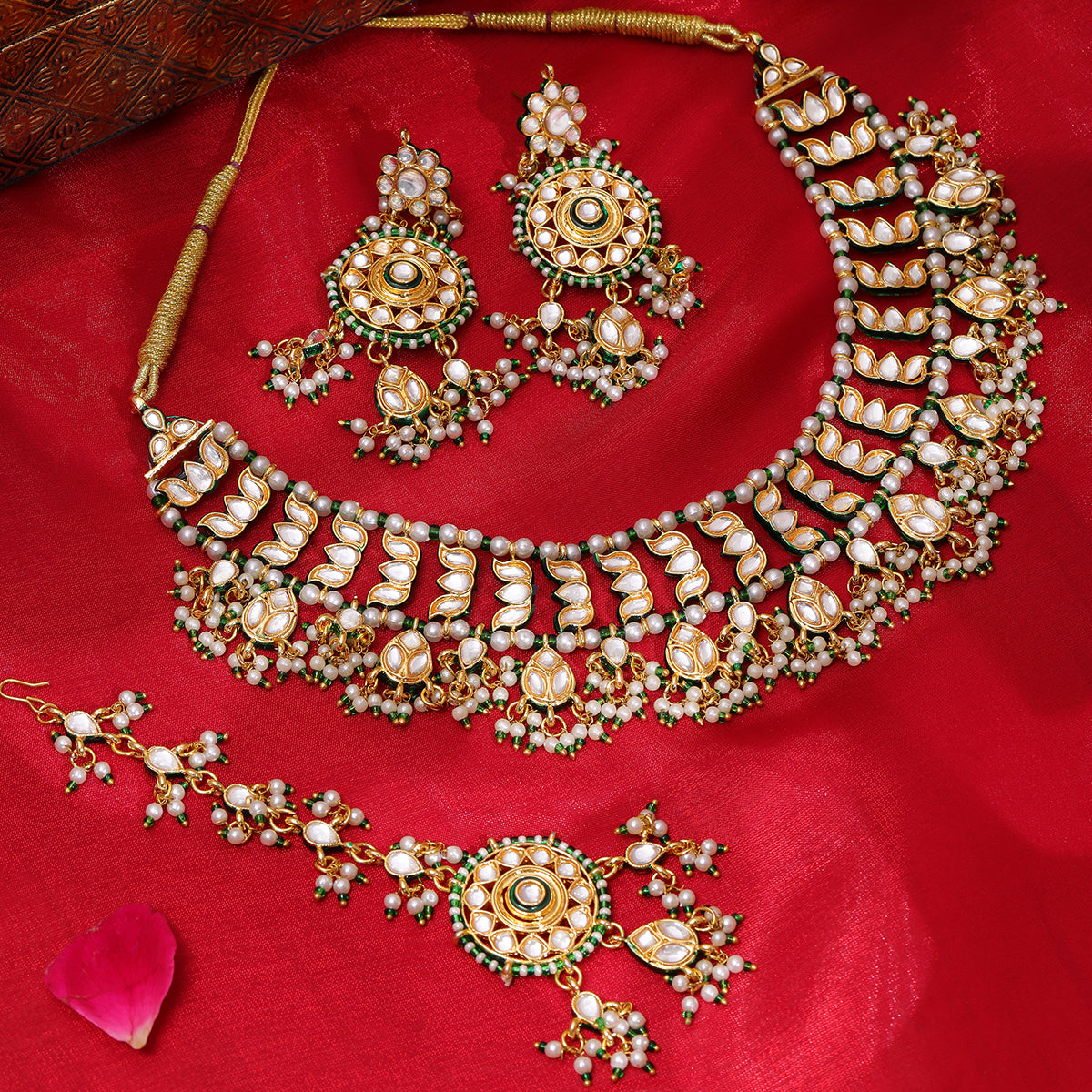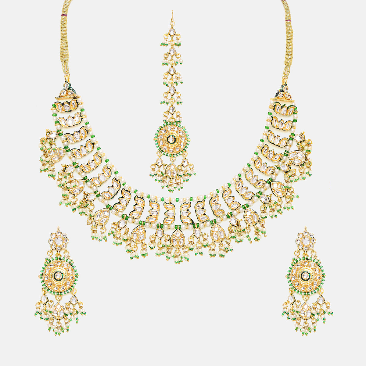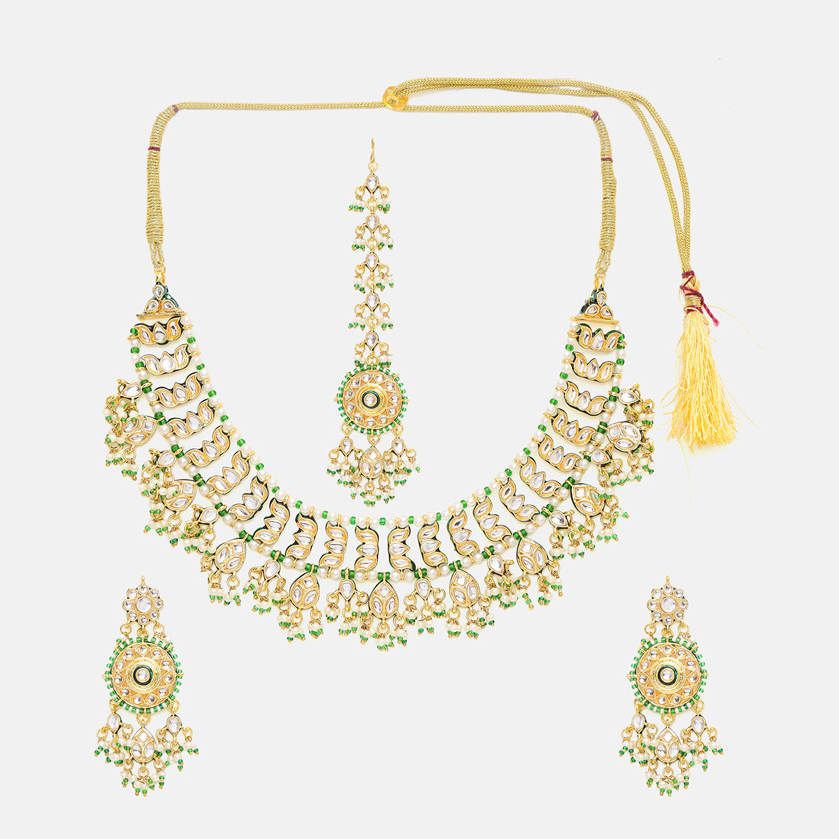 Kundan Collar Necklace with Earrings & Maang Tikka