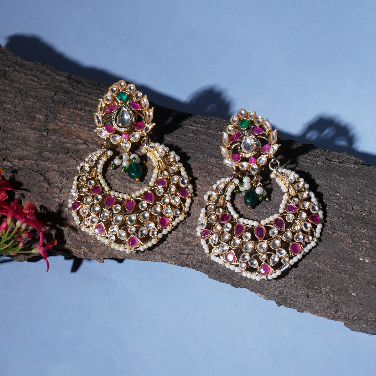 Kundan Maroon Ear Chain with Pearls (set of 2) Earrings included