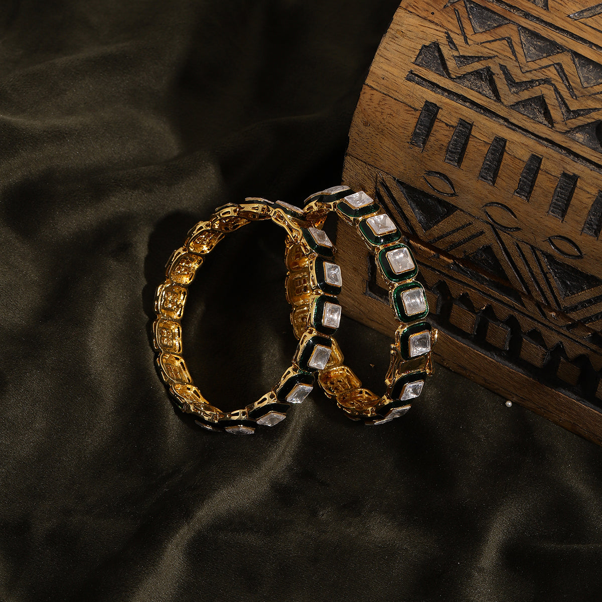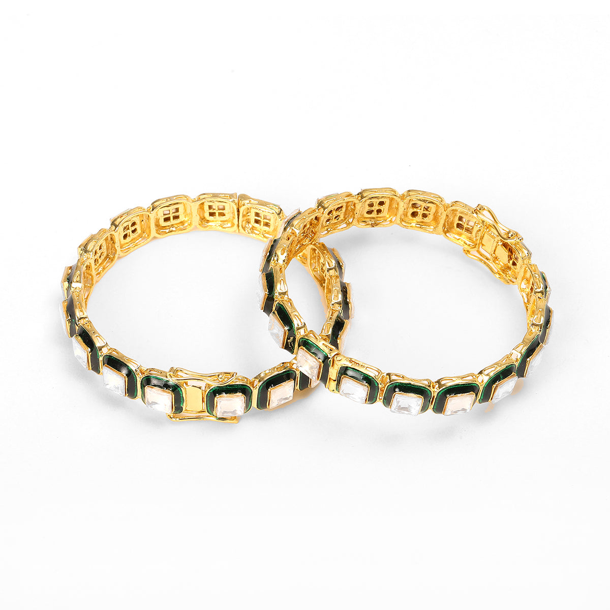 Ruby Raang Women's Kundan Meenakari Bangles (set of 2) - 2'6