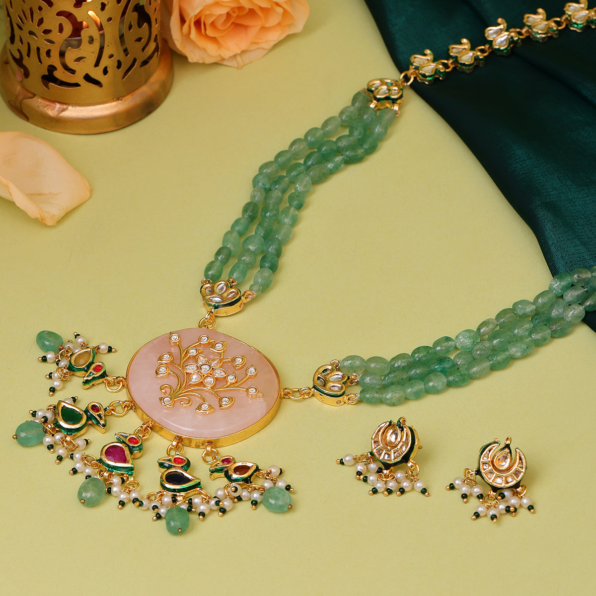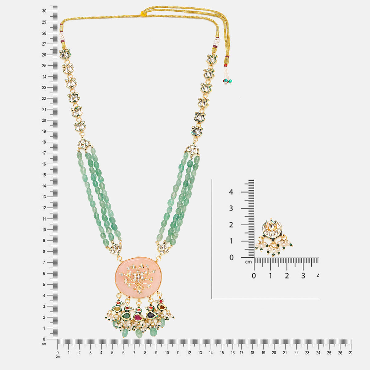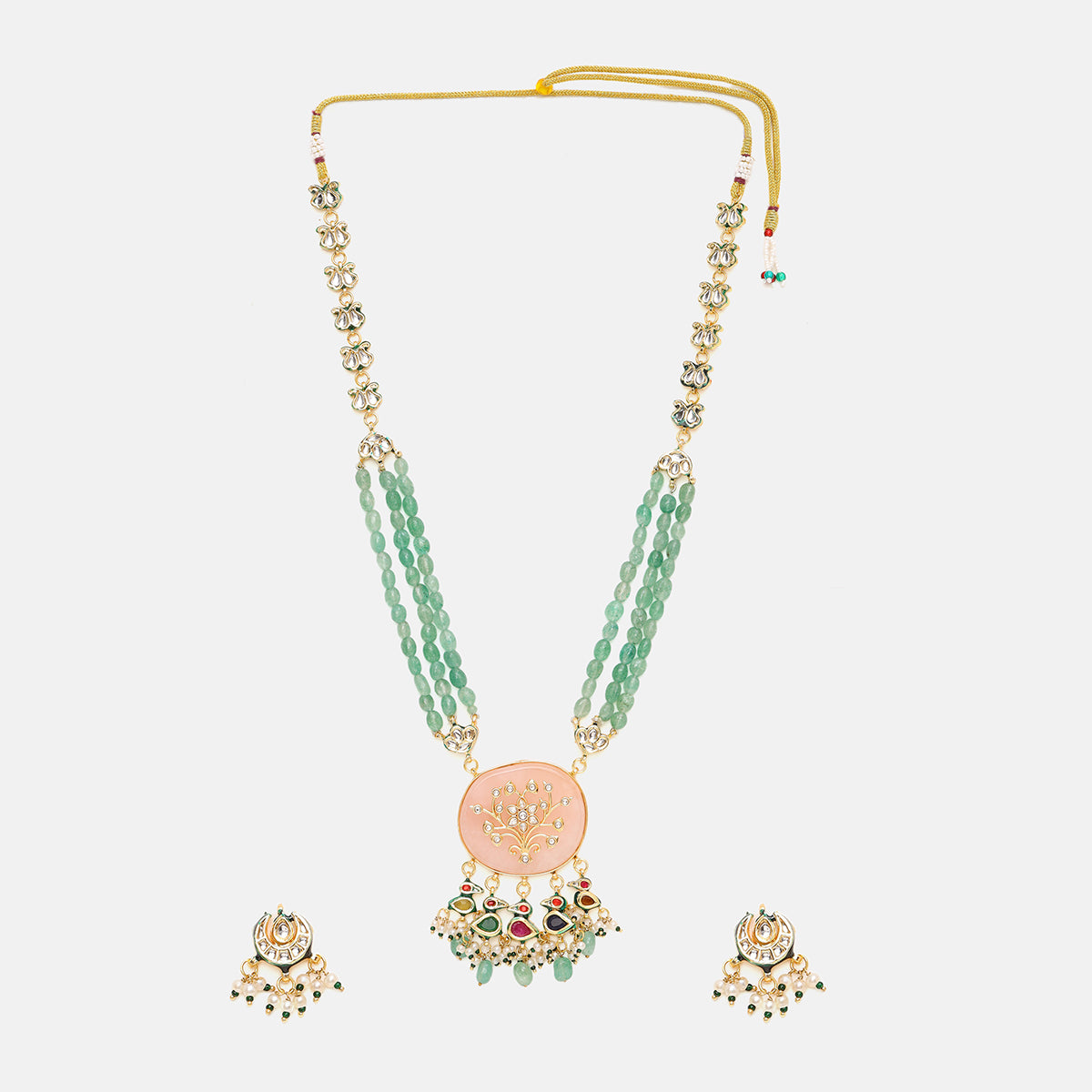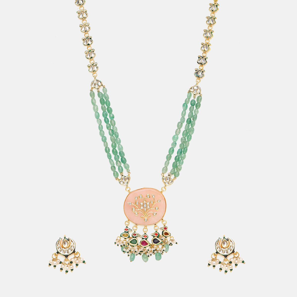 Long Kundan and Stonework Necklace with Earrings