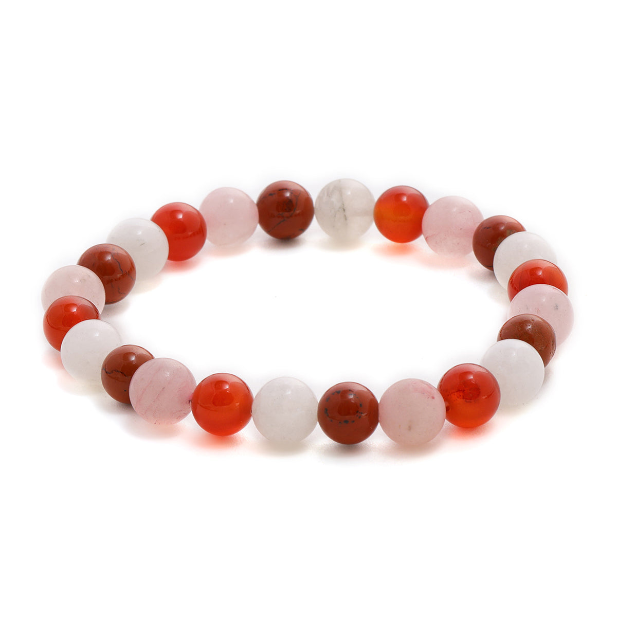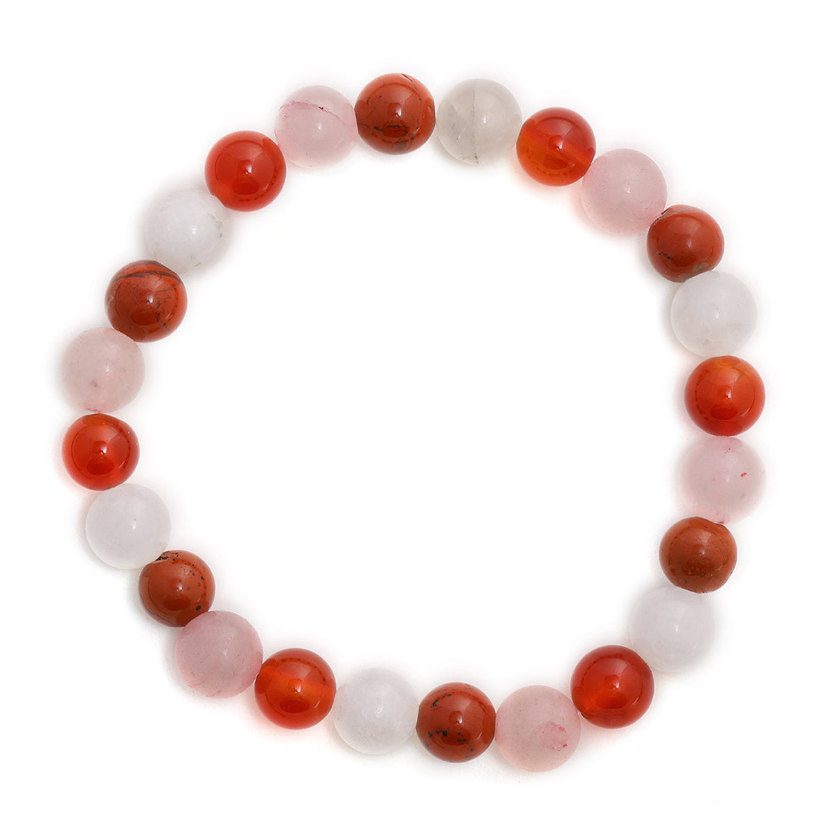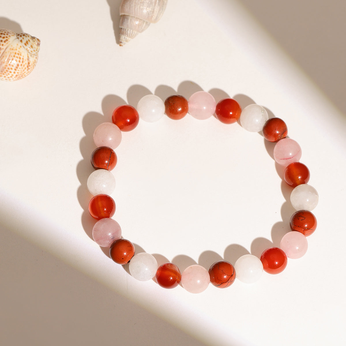 USE CODE: LOVE30Radiate strength and serenity with Ruby Raang’s Red Carnelian, Amathyst Beads Bracelet, handcrafted with a striking combination of natural Red and Clear stones. The vivid red beads symbolize vitality, passion, and grounding energy, while the translucent white quartz is known for clarity, healing, and balance. Each polished stone is strung on a premium elastic thread, offering both comfort and durability for everyday wear. The contrast of bold and soft tones creates a harmonious accessory that speaks of elegance and intention. Style tip: Pair with crisp whites or muted tones to let the bracelet’s colors make a graceful statement.