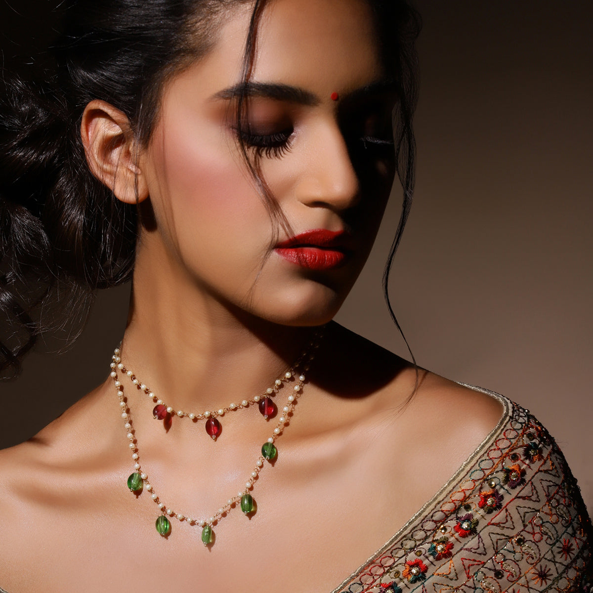Ruby Raang designs and curates the best-in-class kundan pieces, as it’s a timeless classic and can elevate any look. We make sure we add lots of glam with precious and semi-precious stones along with hypoallergenic material for the best in class quality.