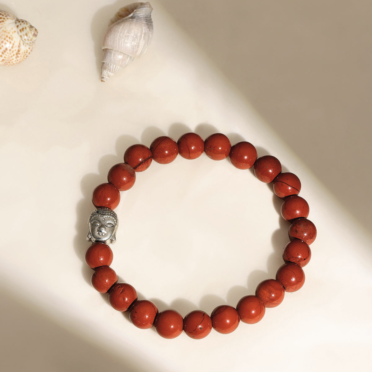 USE CODE: LOVE30Invite strength and serenity into your style with Ruby Raang’s Red Beads with Buddha Bracelet, crafted from Red Jasper stones. Known for its grounding and protective properties, Red Jasper brings stability and confidence, while the detailed Buddha charm adds a spiritual touch, symbolizing inner peace and mindfulness. The smooth, polished beads are strung on a durable elastic cord, ensuring a comfortable fit for everyday wear. With its rich red tones and meaningful design, this bracelet blends wellness with understated elegance. Style tip: Pair it with neutral tones or layer with other gemstone bracelets for a balanced, earthy look.