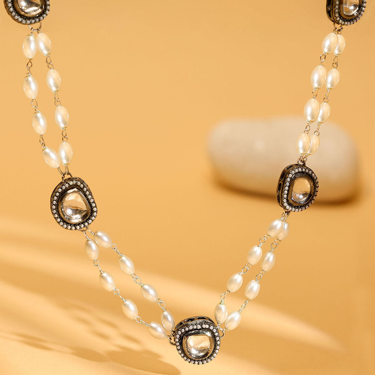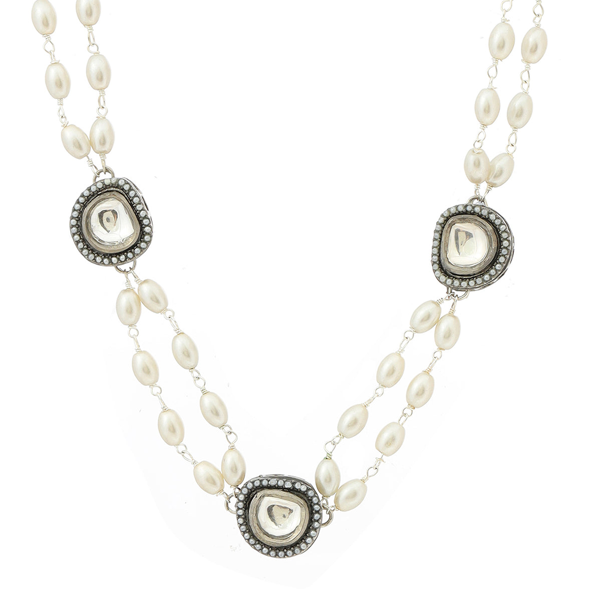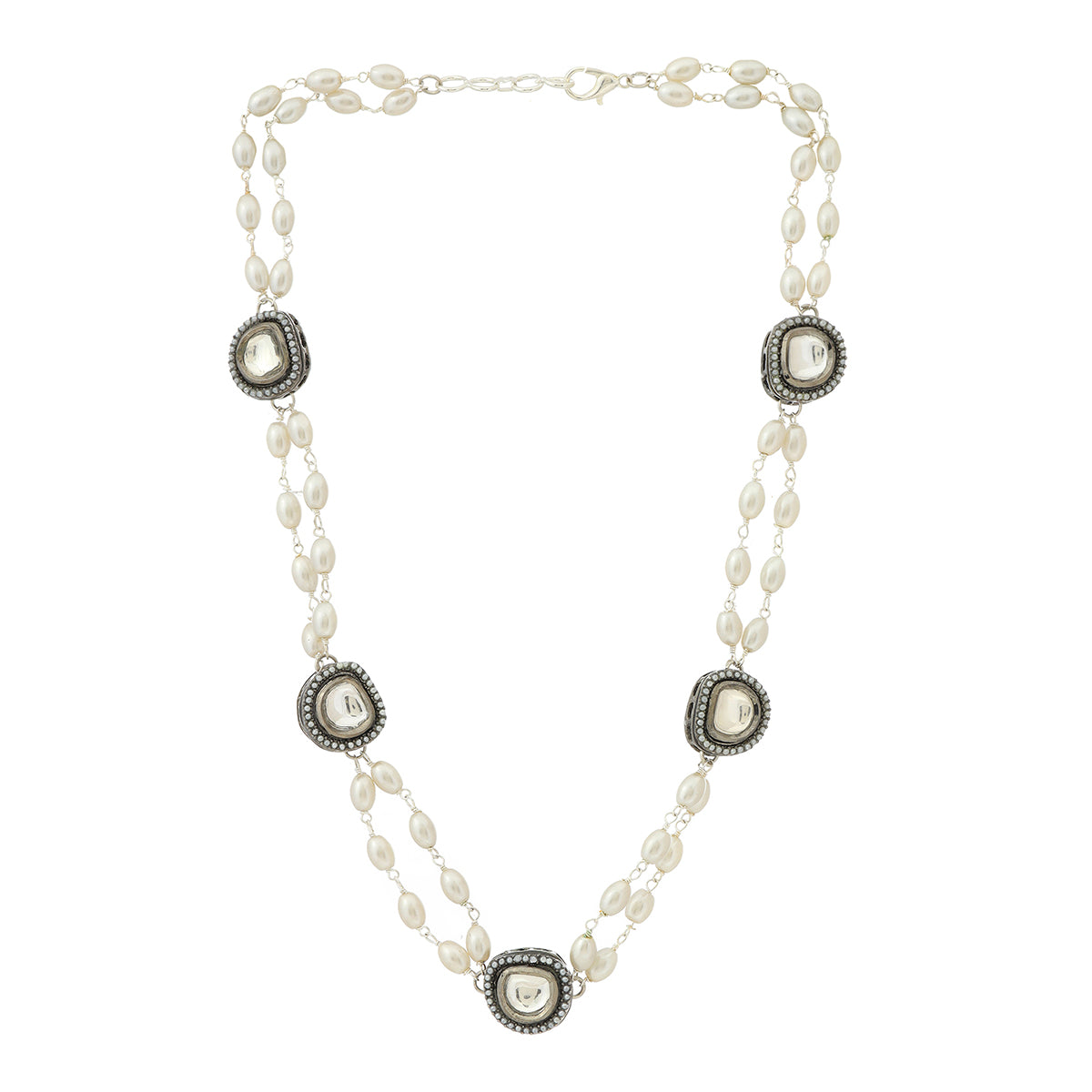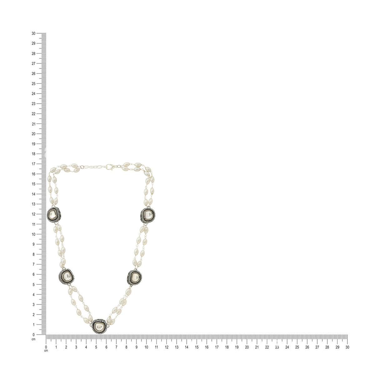 Rhodium Plated Kundan Necklace by Ruby Raang