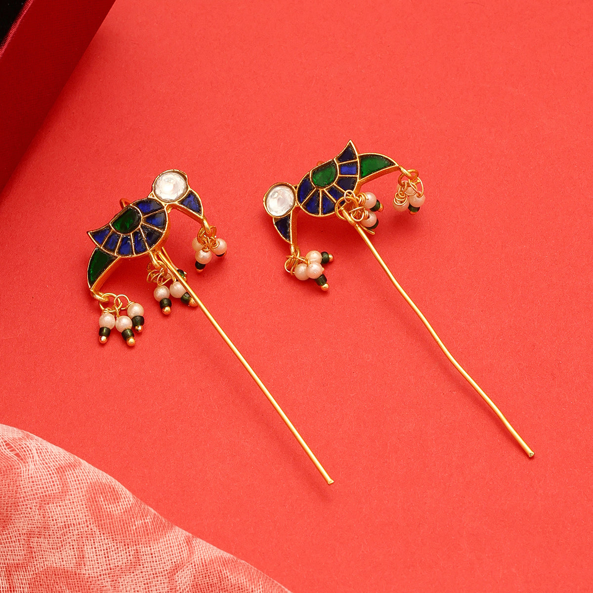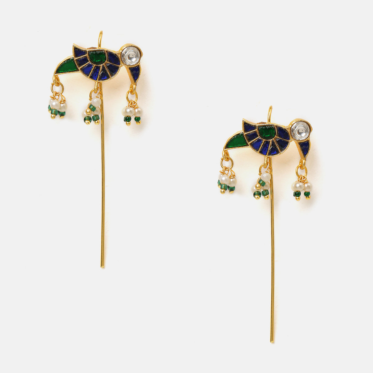 USE CODE: LOVE10This Pair of Earrings feels alive in the nicest way. The Green stones sit close to the ear , and the pearl drops fall gently, adding that movement every time you turn your head. It’s one of those pieces people look at twice, not because it’s loud, but because it’s different. Handcrafted with care, it carries a soft and an organic feel.