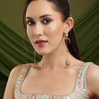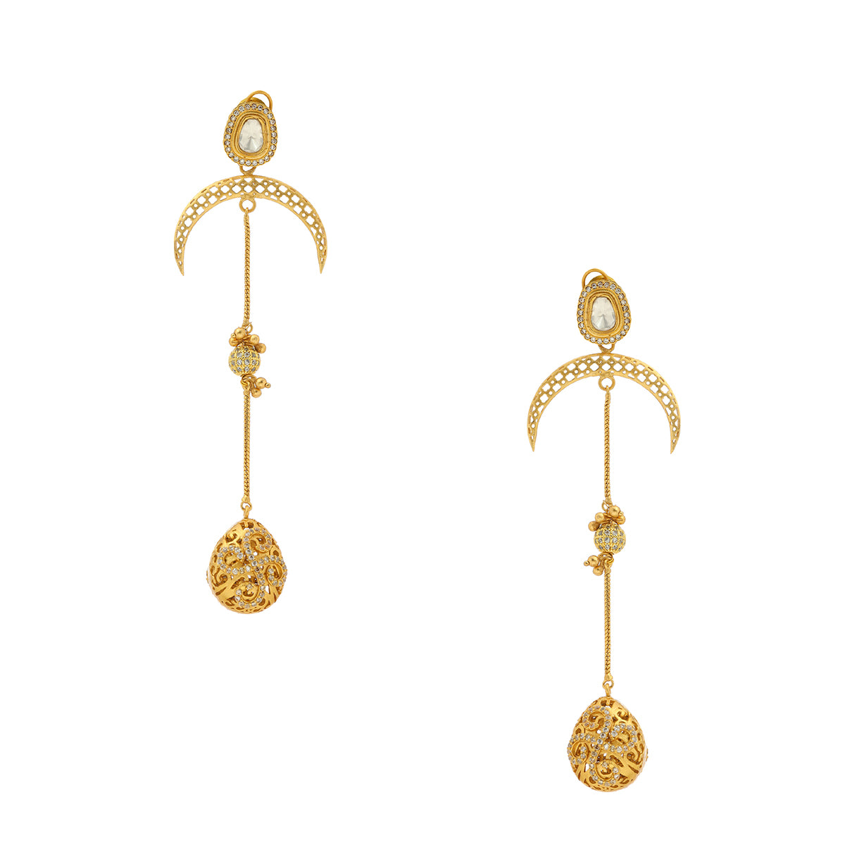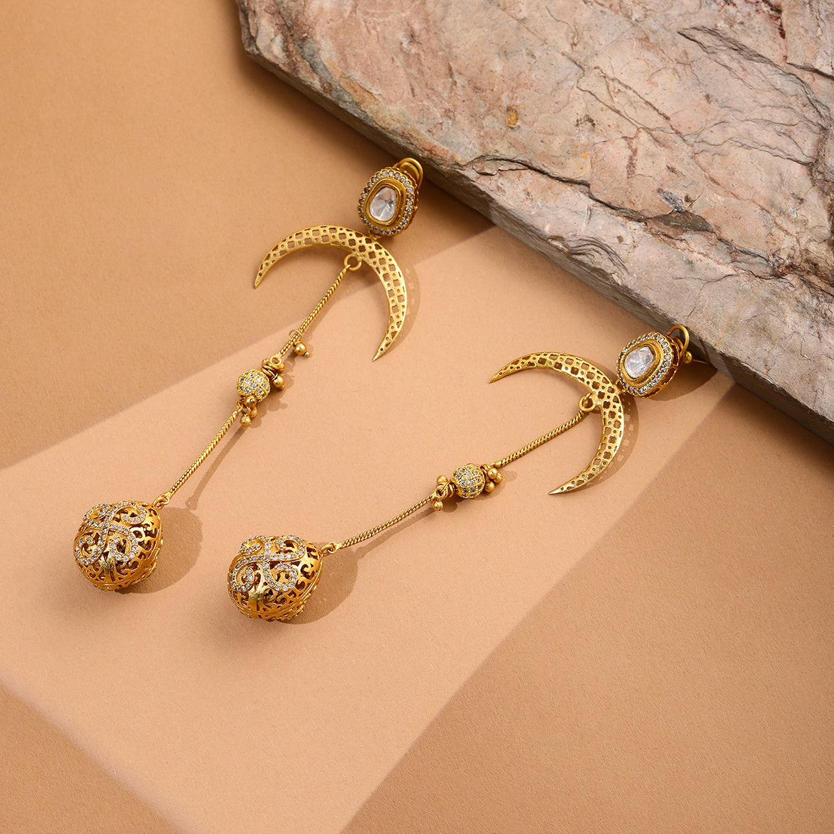 Style these earrings with a silk saree or embroidered gown for a luxurious look. Keep your hair styled in a bun or swept-back waves to showcase the length and craftsmanship of the piece.