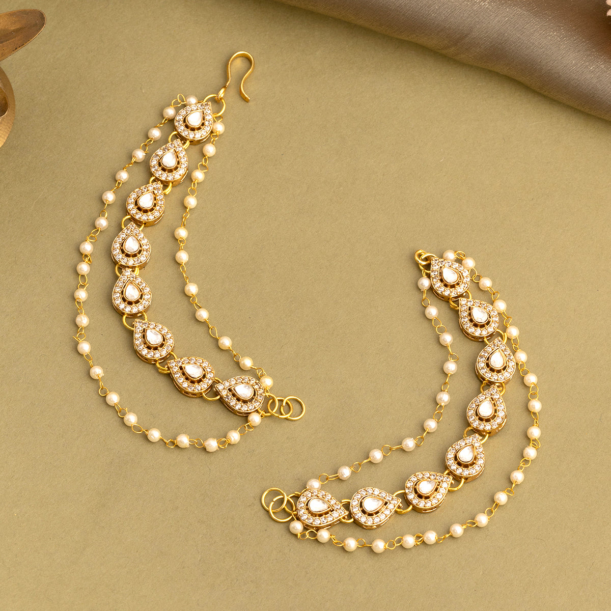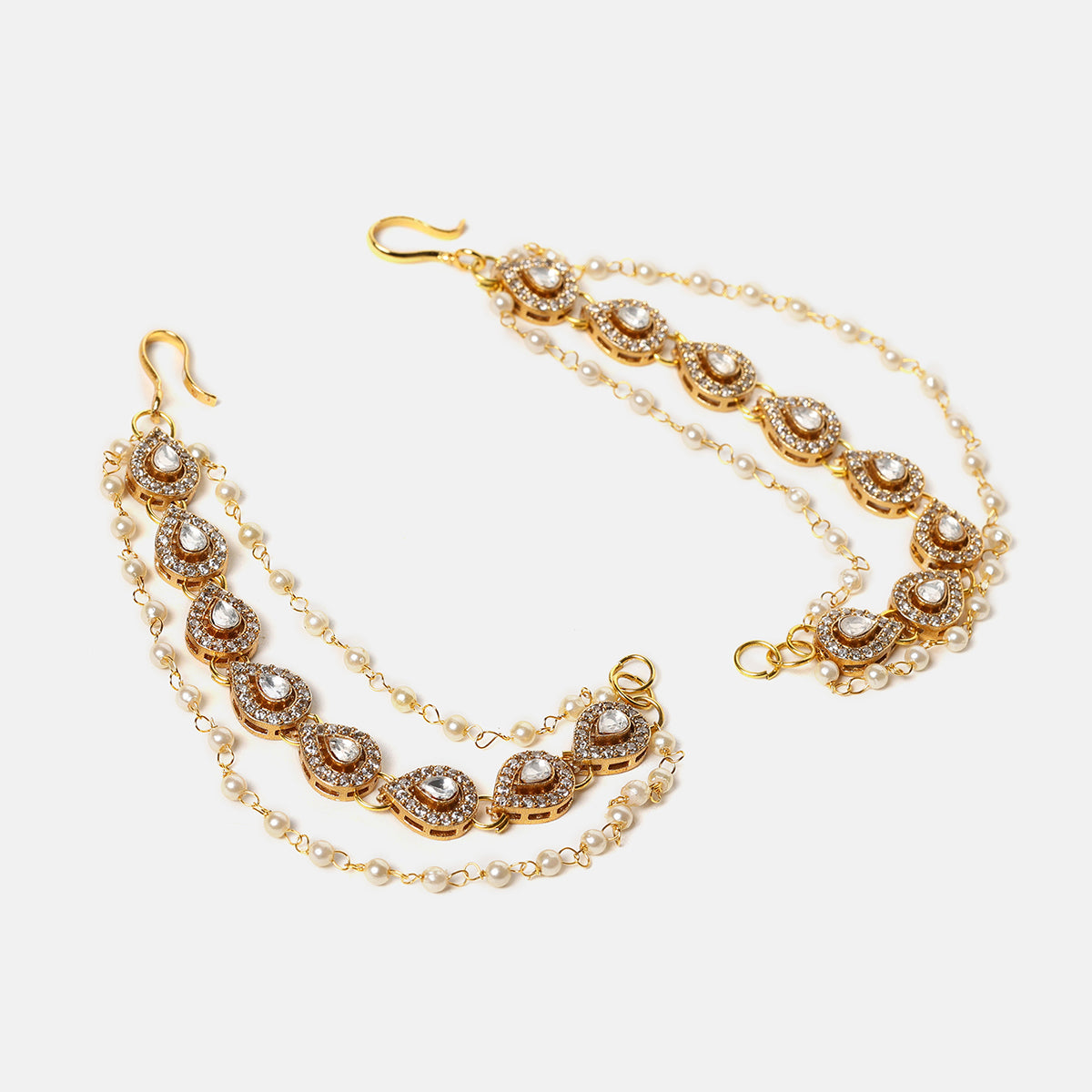 USE CODE: LOVE10Featuring finely detailed kundan motifs paired with delicate pearl drops. Thoughtfully designed to enhance statement earrings, this piece frames the face beautifully. The layered chains add depth while maintaining a light and comfortable feel.