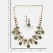 Ruby Raang Green stone kundan work necklace and matching earrings