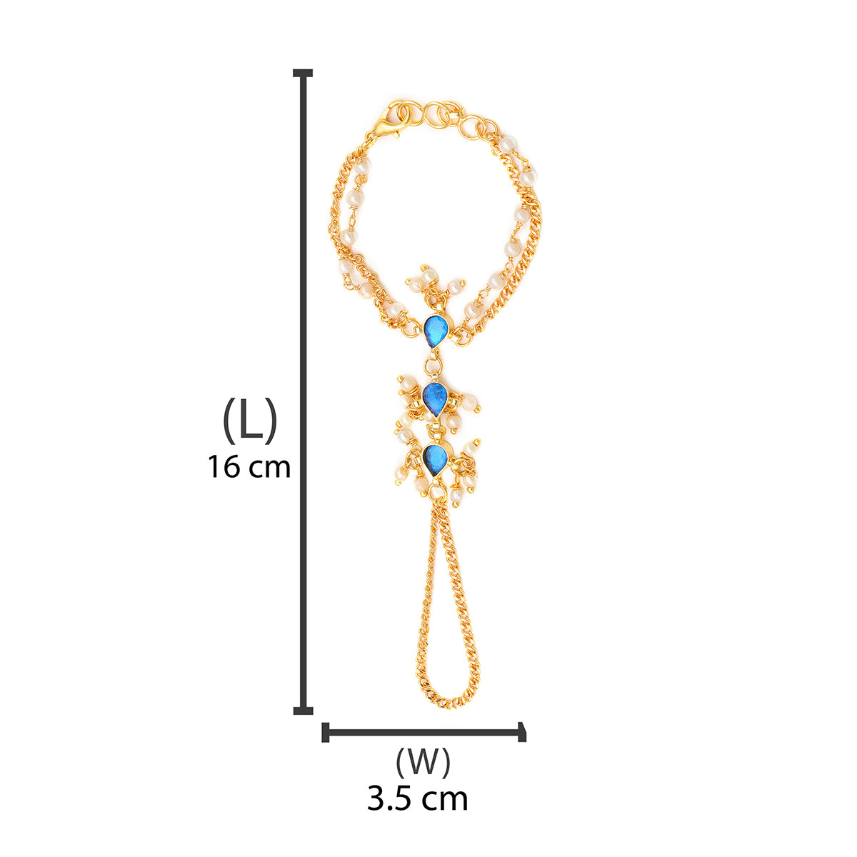 Ruby Raang Kids Kundan Blue Stone Bracelet/Haath Phool in Gold Plated Brass with Pearls