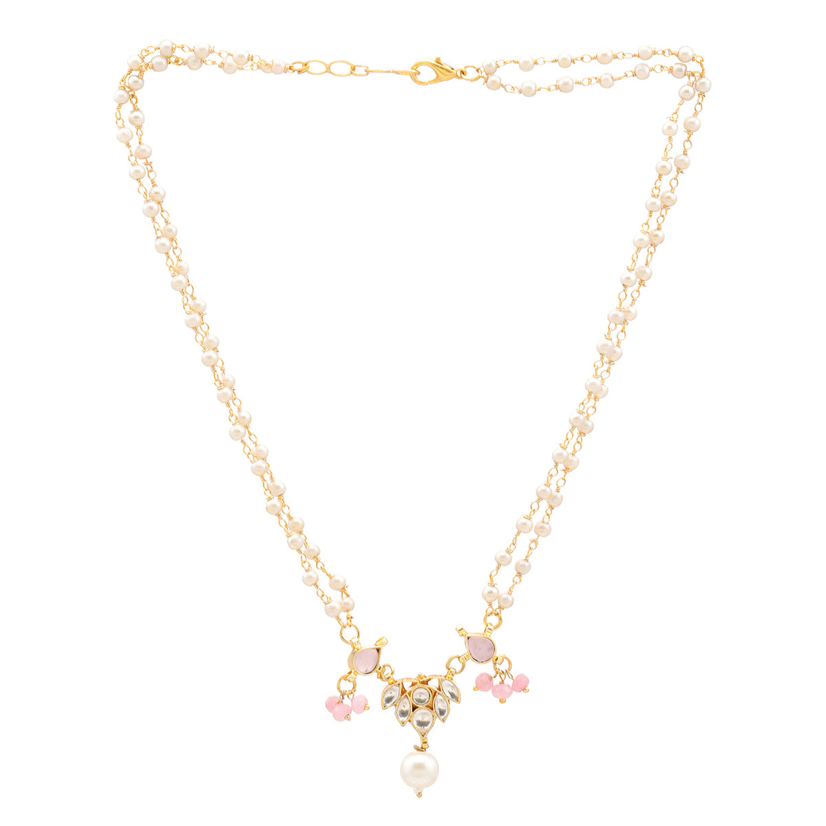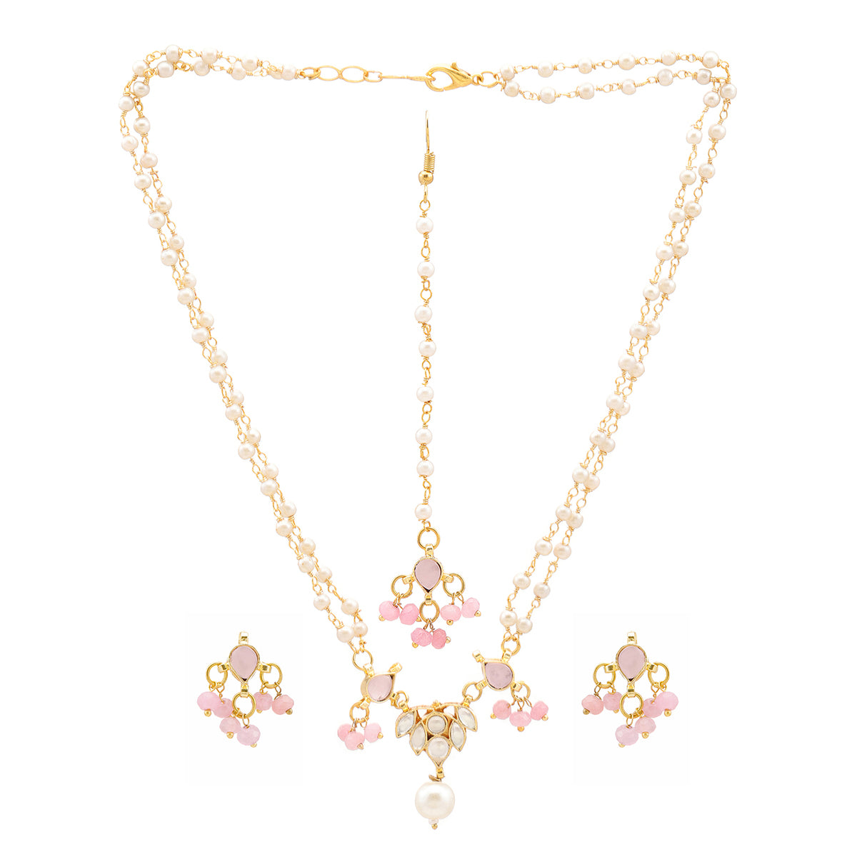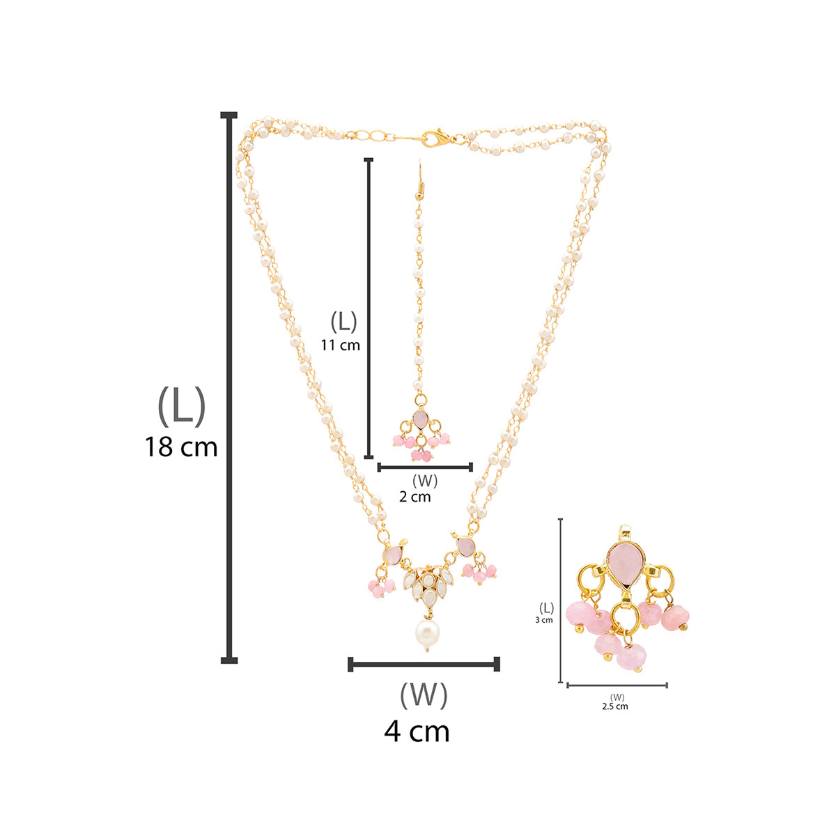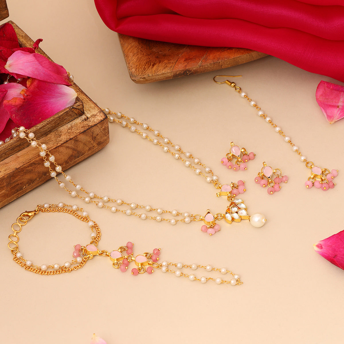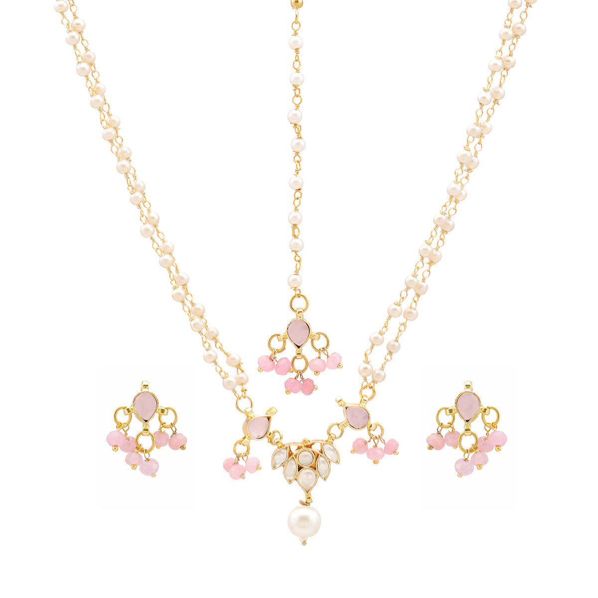 Ruby Raang Kids Kundan Blush Pink Sone Jewelry Set in Gold Plated Brass with Pearls