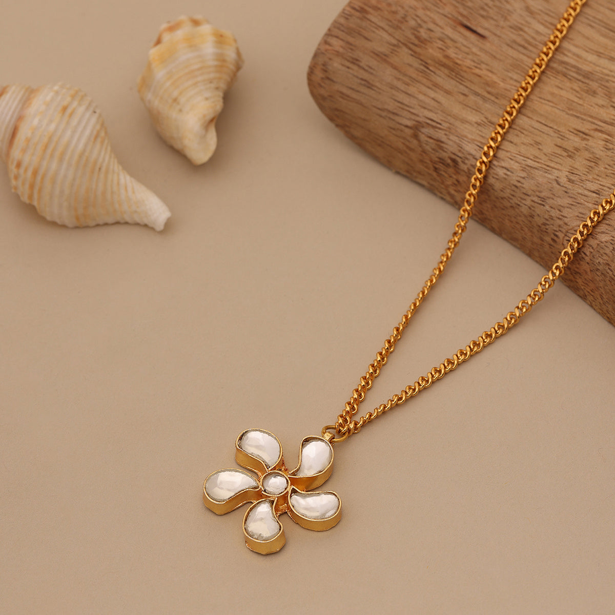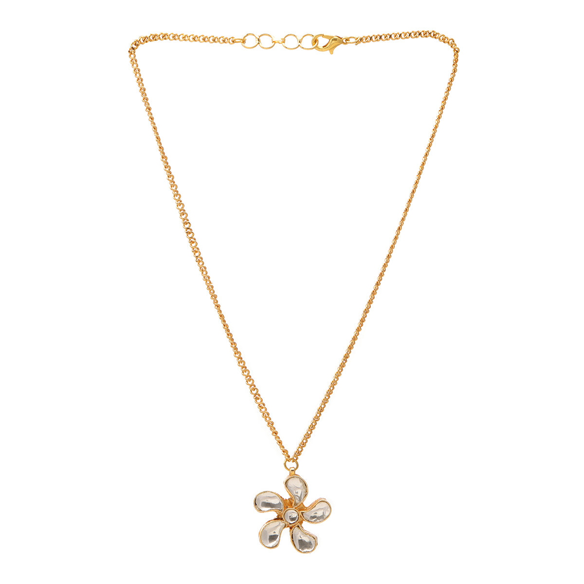 Ruby Raang Kids Kundan Flower Necklace in Gold Plated Brass