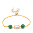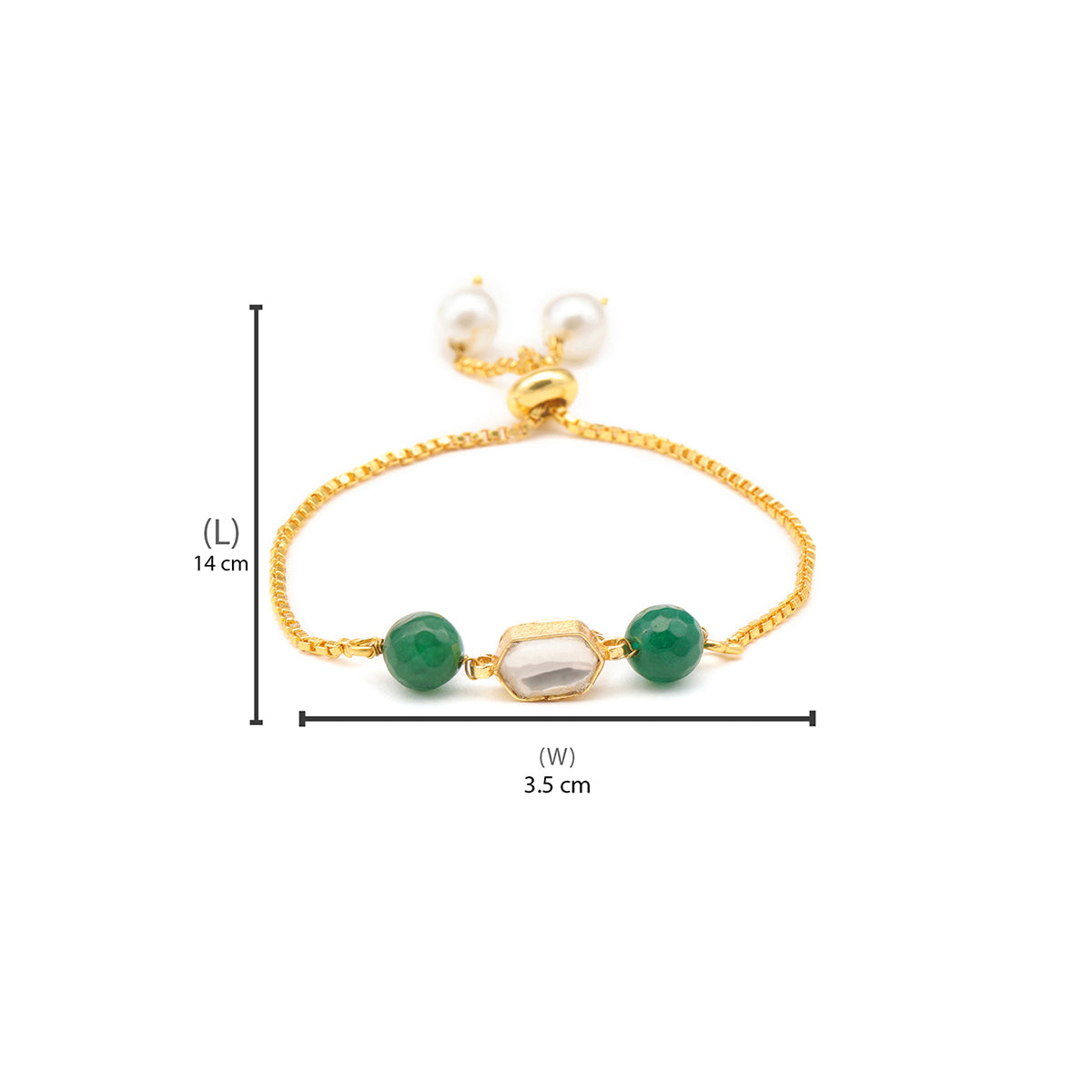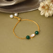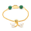 Ruby Raang Kids Kundan Green Stone Bracelet in Gold Plated Brass with Pearls