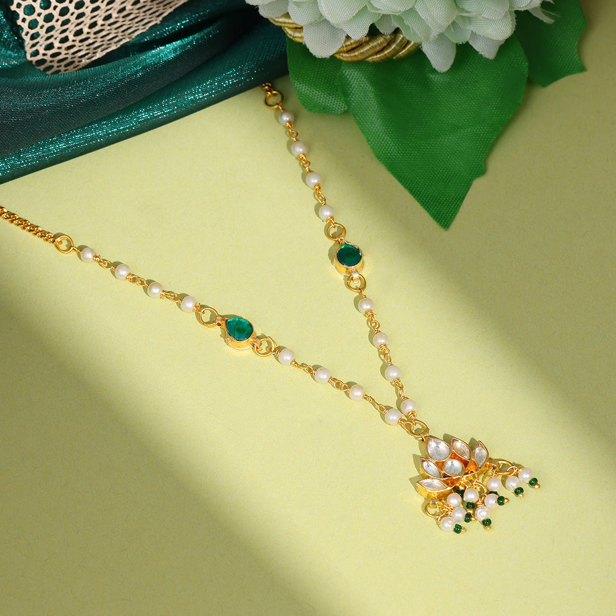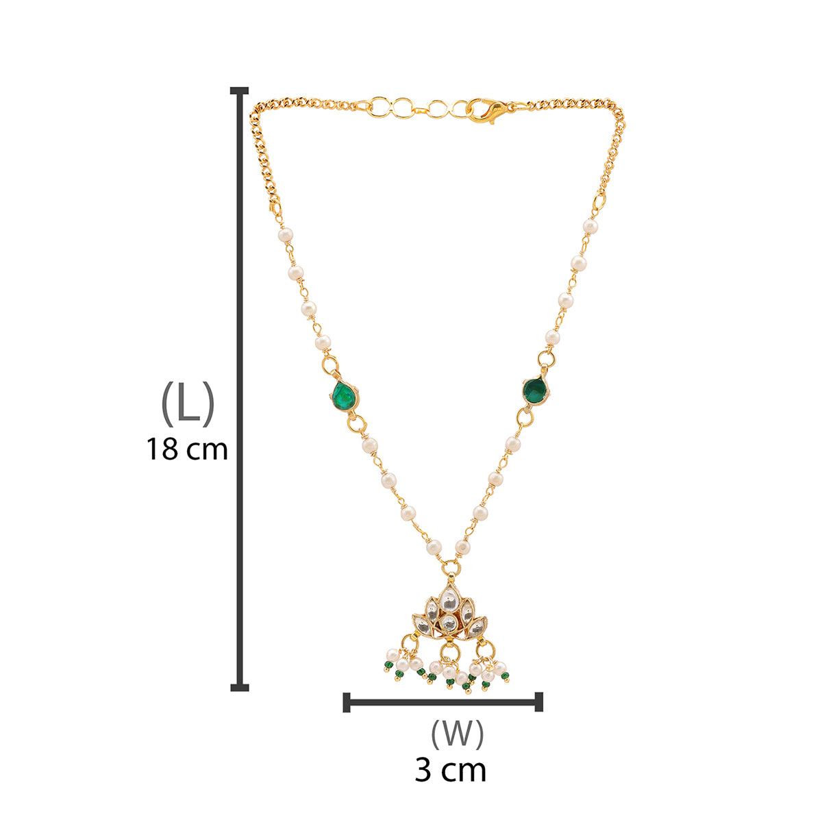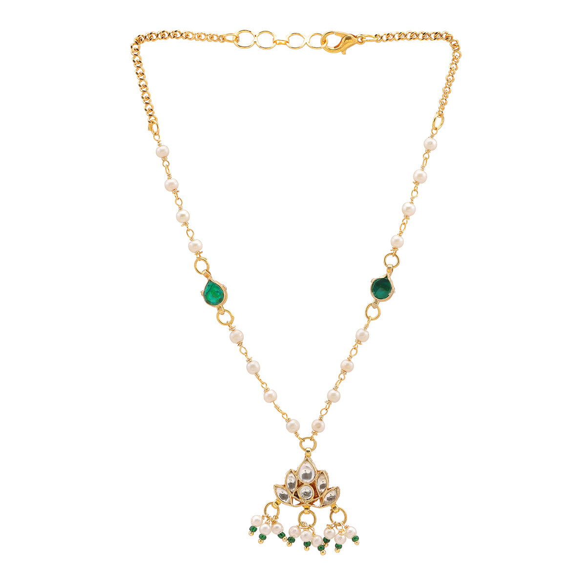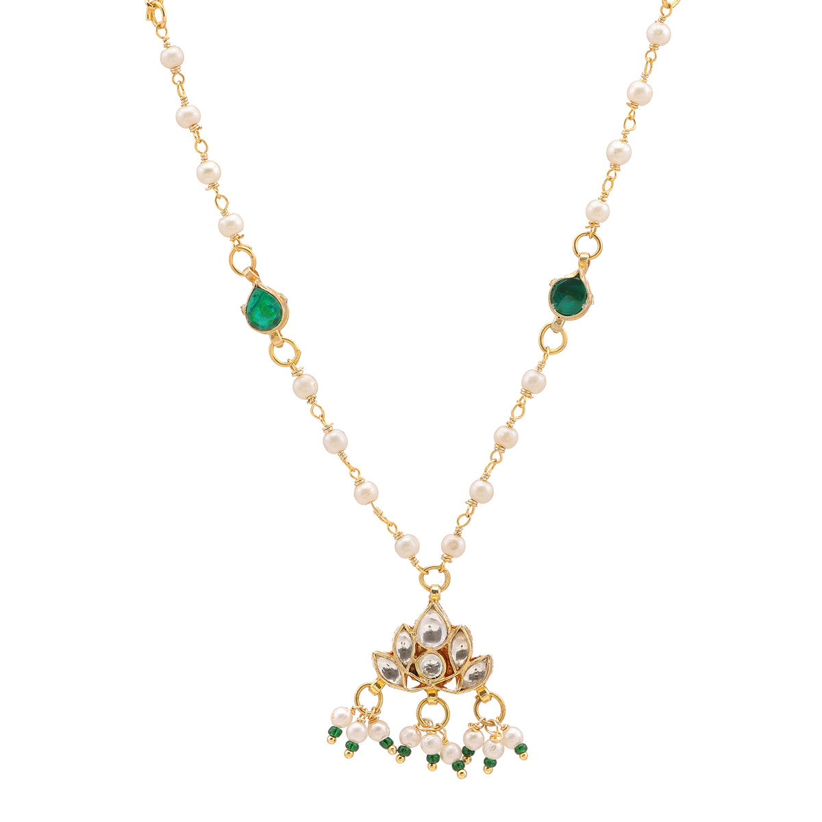 Ruby Raang Kids Kundan Green Stone Necklace in Gold Plated Brass with Pearls