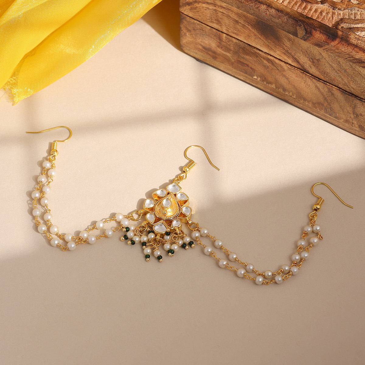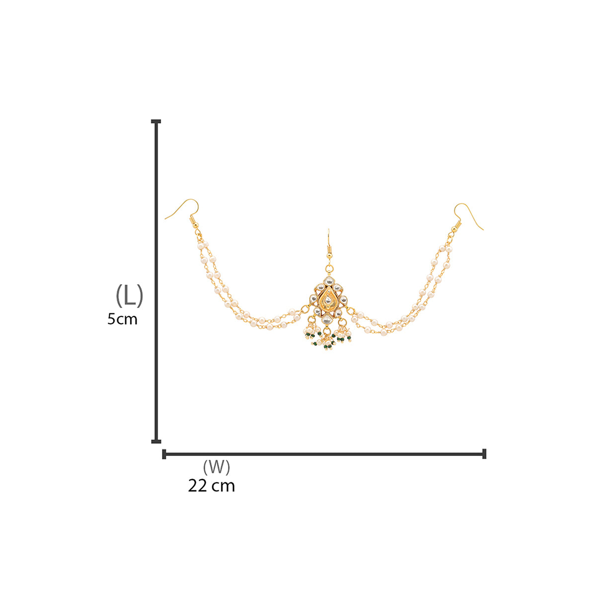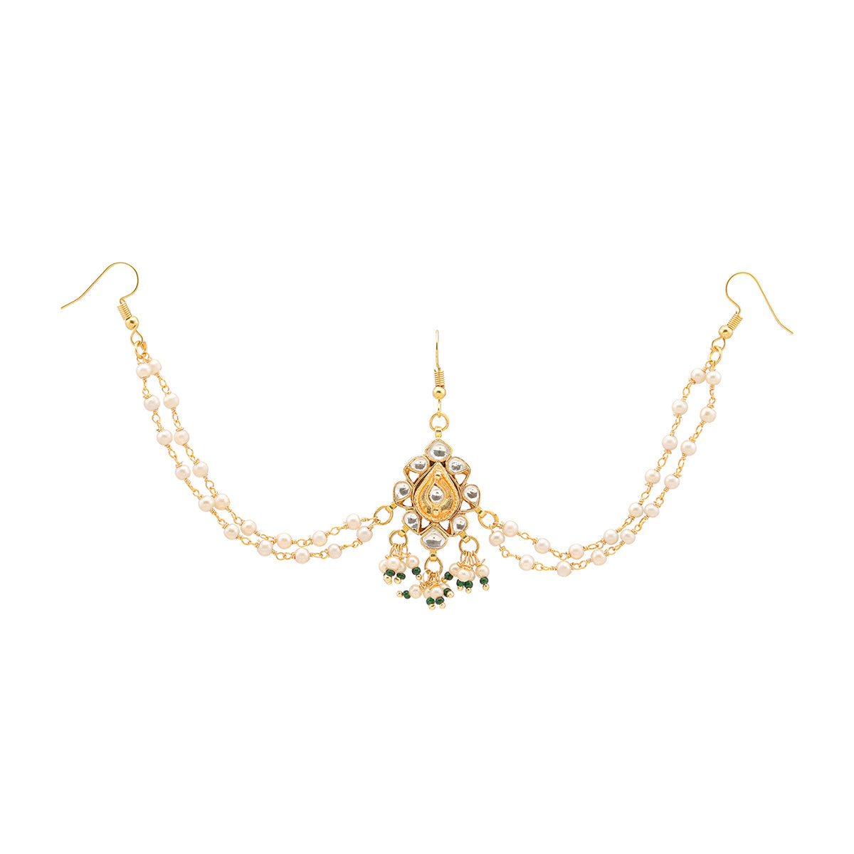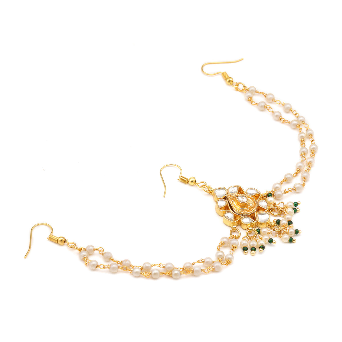 Ruby Raang Kids Kundan Hair Accesory / Hair Pin with Pearl Jhallars in Gold Plated Brass