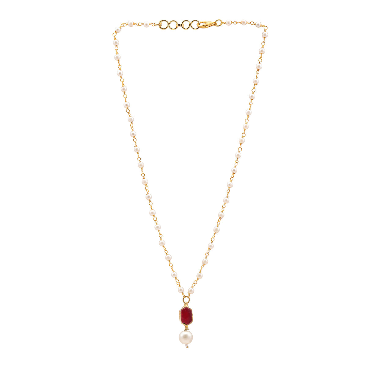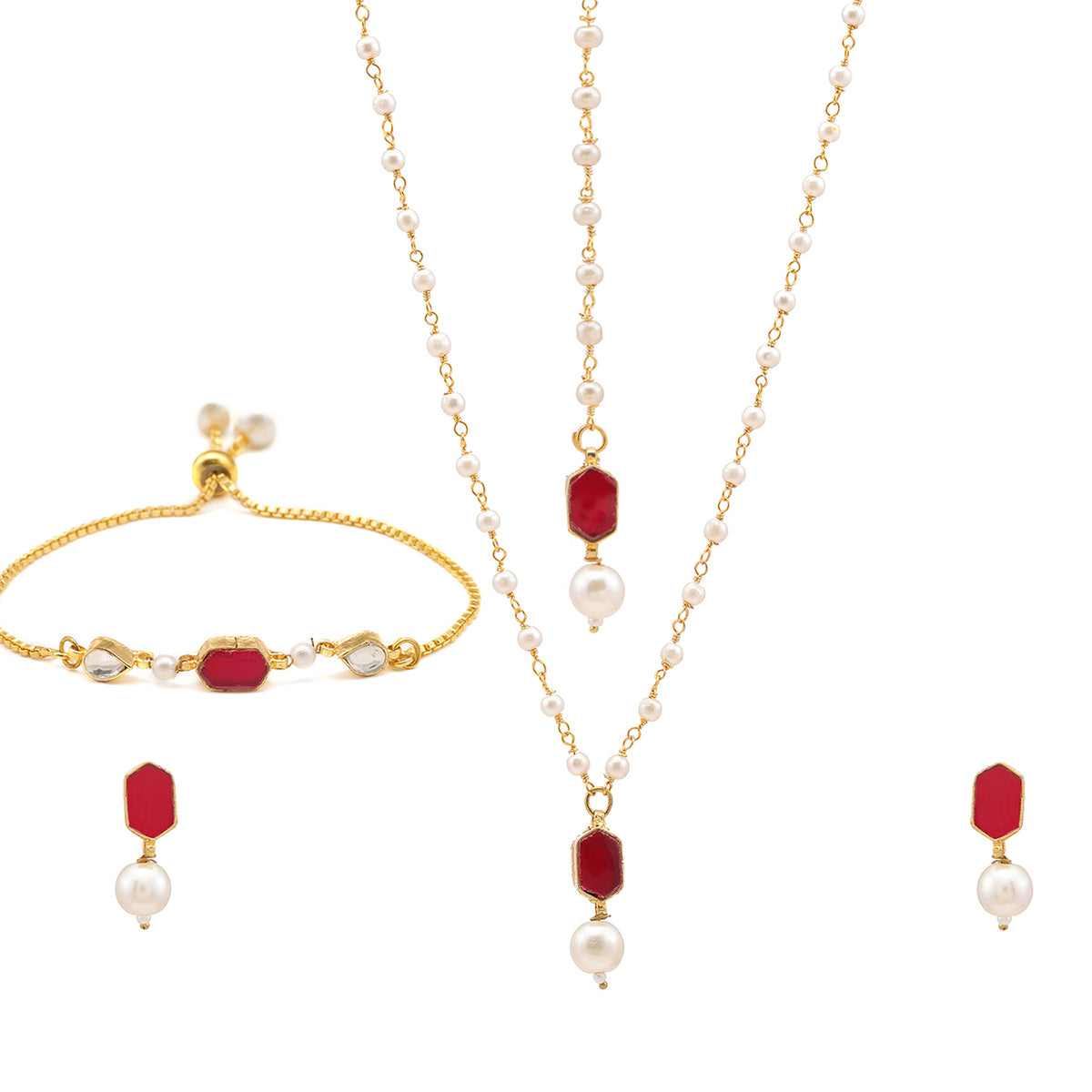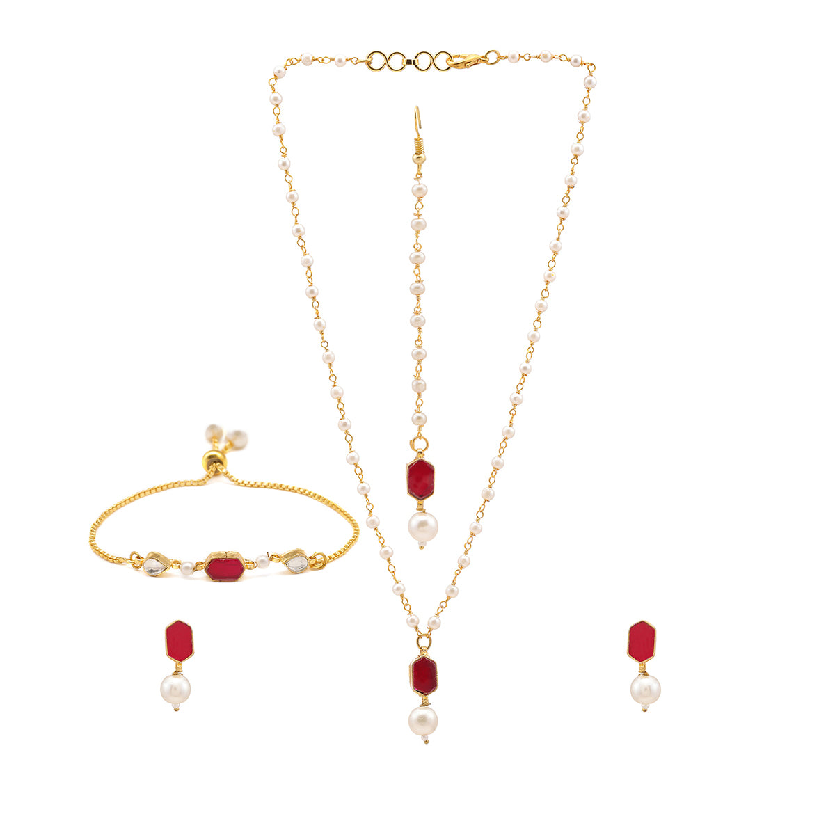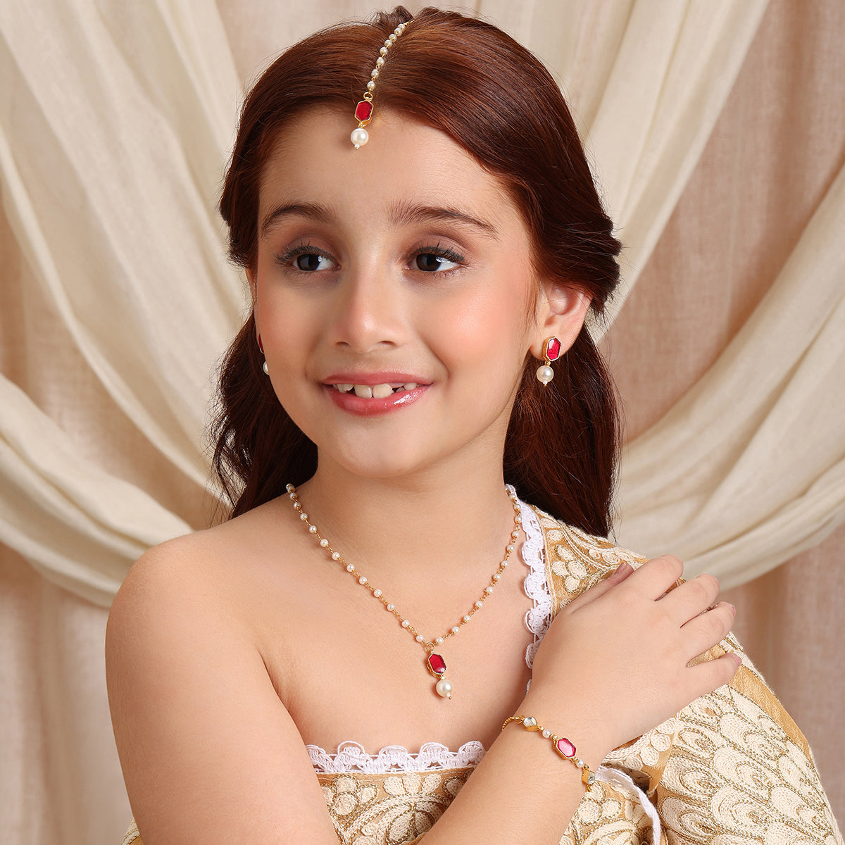 Ruby Raang Kids Kundan Maroon Stone Jewelry Set in Gold Plated Brass with Pearls