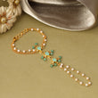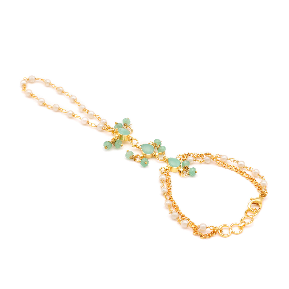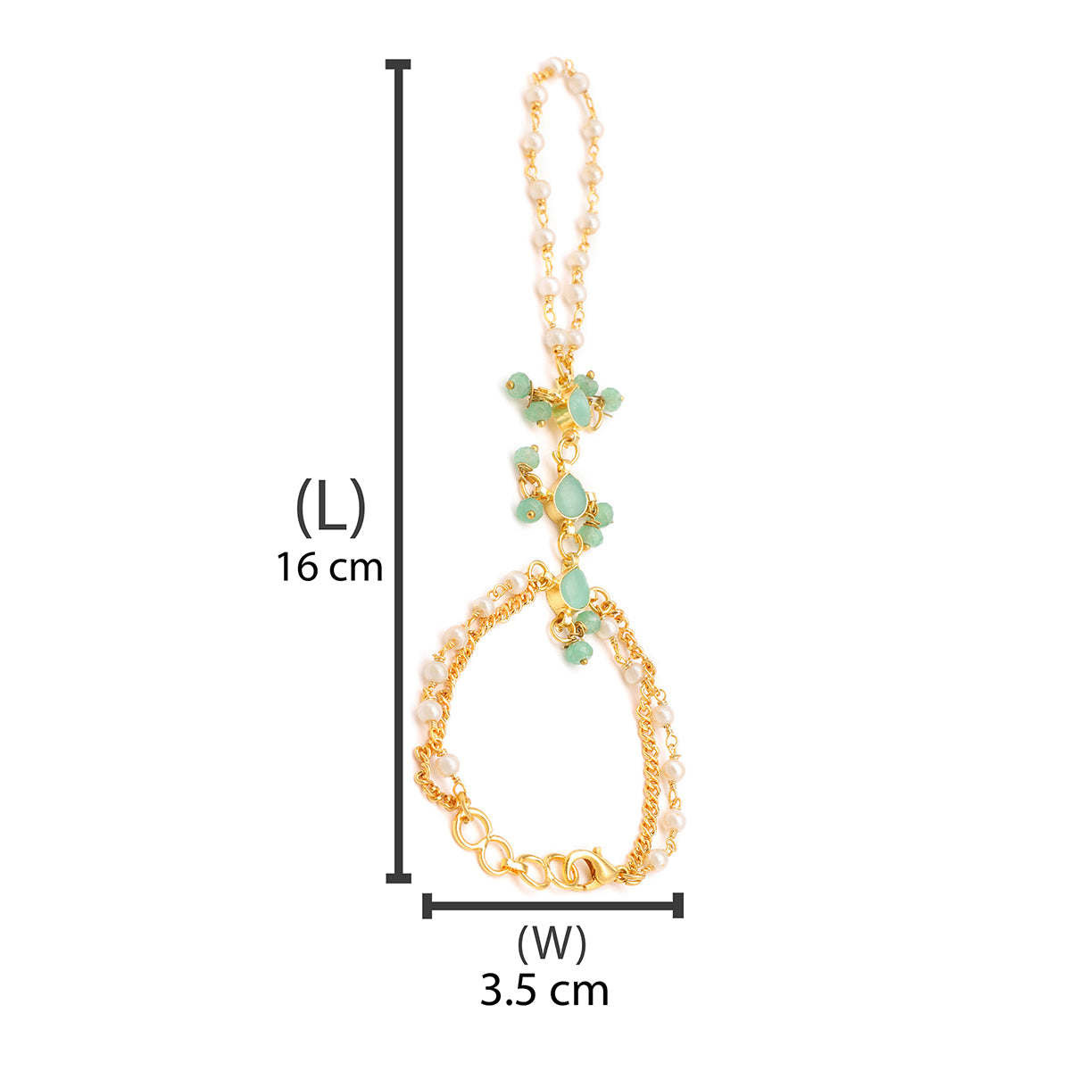 Ruby Raang Kids Kundan Mint Green Stone Bracelet/Haath Phool in Gold Plated Brass with Pearls